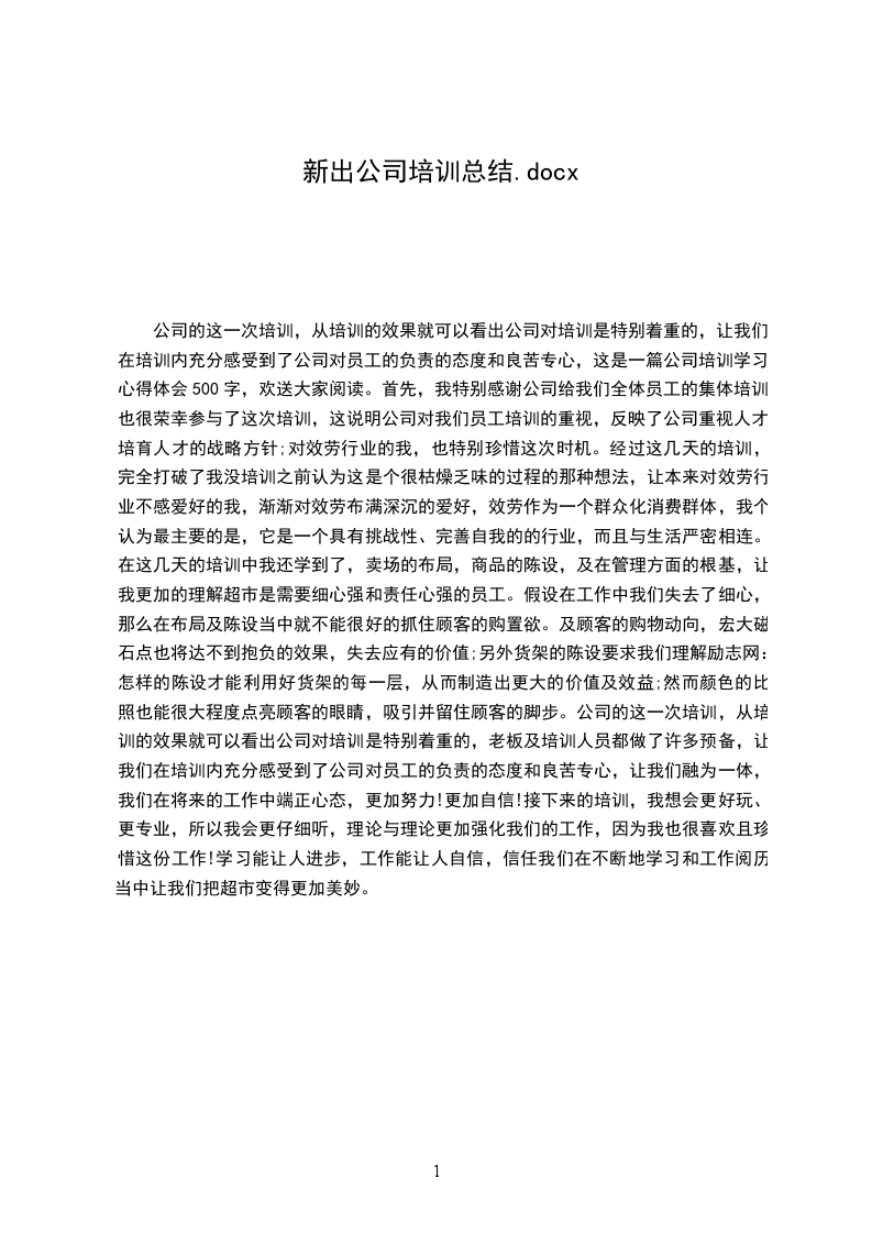 公司的这一次培训,从培训的效果就可以看出公司对培训是特别着重的,让我们在培训内充分感受到了公司对员工的负责的态度和良苦专心,这是一篇公司培训学习心得体会500字,欢送大家阅读。首先,我特别感谢公司给我们全体员工的集体培训,也很荣幸参与了这次培训,这说明公司对我们员工培训的重视,反映了公司重视人才,培育人才的战略方针;对效劳行业的我,也特别珍惜这次时机。经过这几天的培训,完全打破了我没培训之前认为这是个很枯燥乏味的过程的那种想法,让本来对效劳行业不感爱好的我,渐渐对效劳布满深沉的爱好,效劳作为一个群众化消费群体,我个认为最主要的是,它是一个具有挑战性、完善自我的的行业,而且与生活严密相连。在这几天的培训中我还学到了,卖场的布局,商品的陈设,及在管理方面的根基,让我更加的理解超市是需要细心强和责任心强的员工。假设在工作中我们失去了细心,那么在布局及陈设当中就不能很好的抓住顾客的购置欲。及顾客的购物动向,宏大磁石点也将达不到抱负的效果,失去应有的价值;另外货架的陈设要求我们理解励志网:怎样的陈设才能利用好货架的每一层,从而制造出更大的价值及效益;然而颜色的比照也能很大程度点亮顾客的眼睛,吸引并留住顾客的脚步。公司的这一次培训,从培训的效果就可以看出公司对培训是特别着重的,老板及培训人员都做了许多预备,让我们在培训内充分感受到了公司对员工的负责的态度和良苦专心,让我们融为一体,我们在将来的工作中端正心态,更加努力!更加自信!接下来的培训,我想会更好玩、更专业,所以我会更仔细听,理论与理论更加强化我们的工作,因为我也很喜欢且珍惜这份工作!学习能让人进步,工作能让人自信,信任我们在不断地学习和工作阅历当中让我们把超市变得更加美妙。