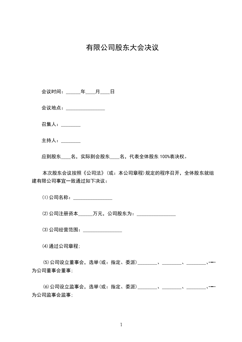 公司股东会成员 人,出席本次会议的股东 人,代表公司股东 %表决权,所作出的决议经公司股东表决权 %同意通过,符合《中华人民共和国公司法》和本公司章程的规定。决议内容如下: