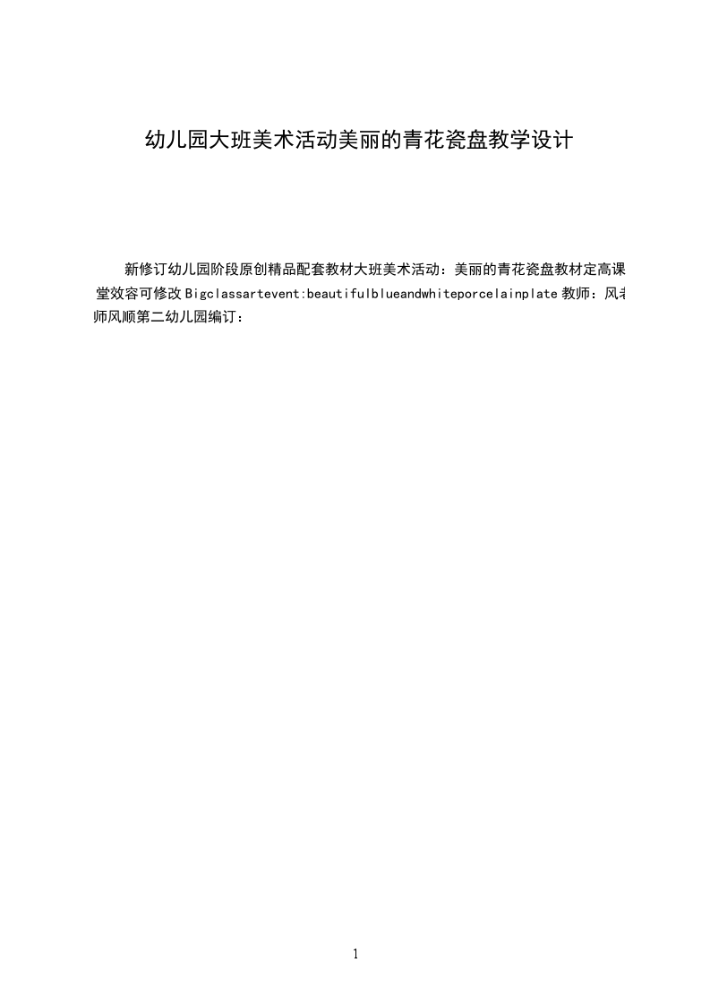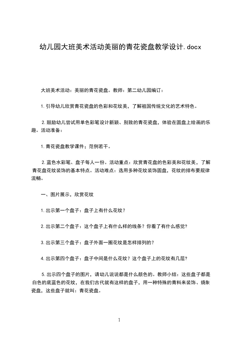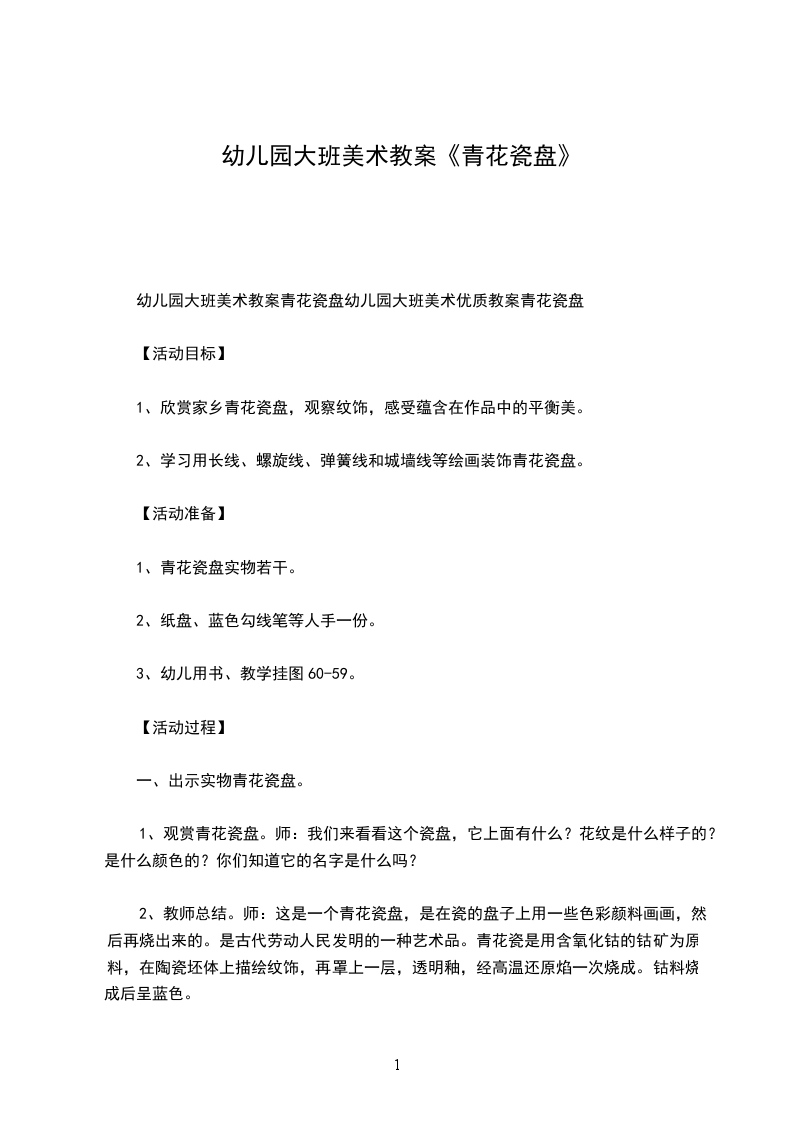 幼儿园大班美术教案青花瓷盘幼儿园大班美术优质教案青花瓷盘