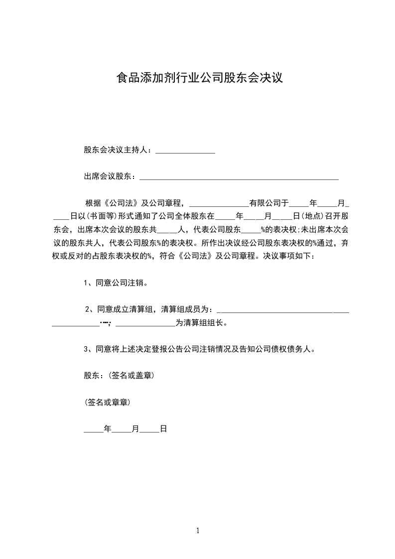 股东会决议主持人:_______________