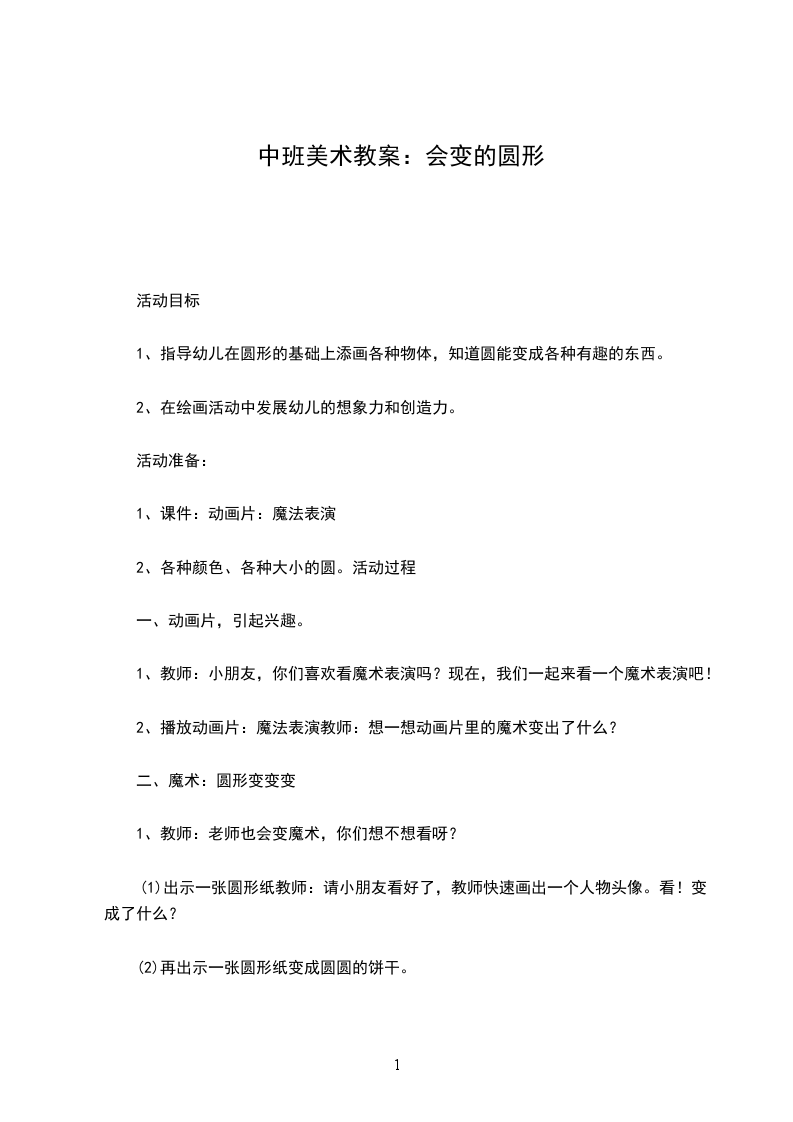 1、昨天,老师做了一个梦,梦见一位仙女,她有一根魔术棒,她走过每一个地方,用魔棒一指,那些五彩的半圆形的石头就会变成各种东西,非常神奇。小仙女也送给老师一根魔术棒,我们也一起来变一变,好吗?