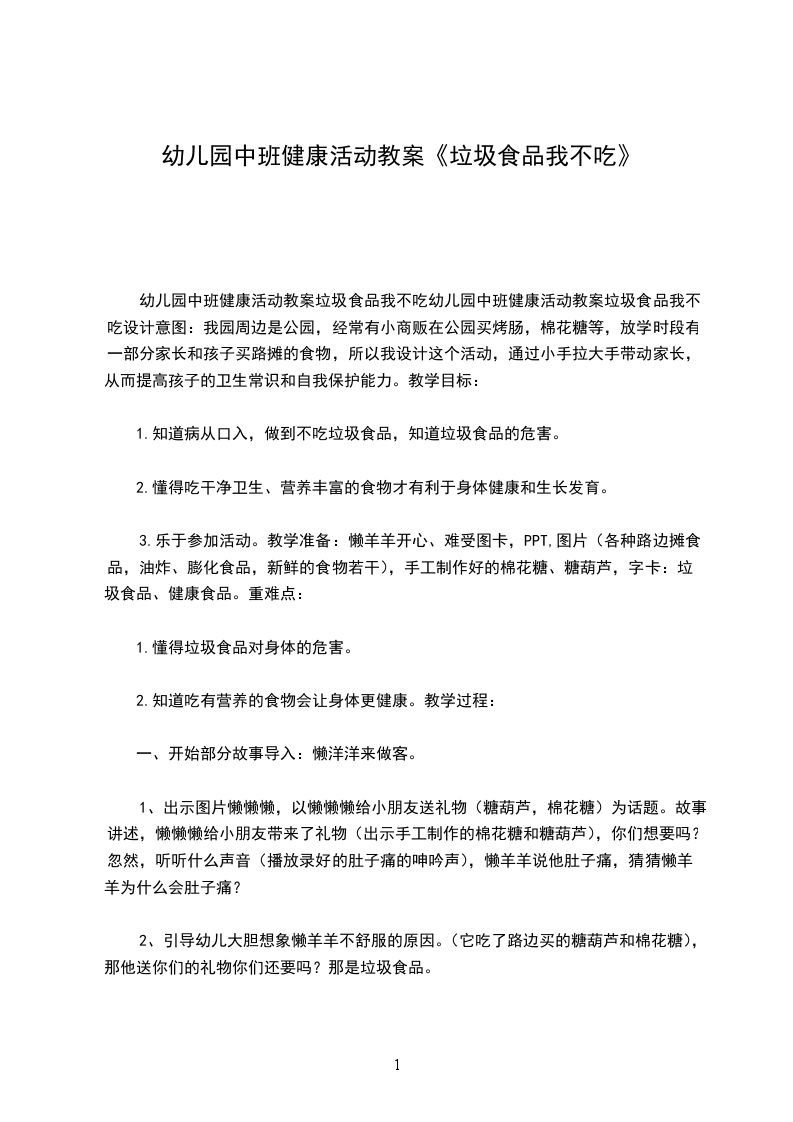 幼儿园大班健康教案吃健康的食品大班幼儿健康教案吃健康的食品活动目标:1知道识别食品包装上的生产日期以及安全标志,并能区分哪些食品是安全的,哪些食品存在安全隐患。2增强食品安全意识,提高幼儿食品安全自我保护能力,培养幼儿良好的饮食卫生习惯。活动准备:1.教学课件吃健康的食品2.图片若干(健康食品蔬菜、水果、坚果;垃圾食品油炸食品,罐头类食品,腌制食品,加工的肉类食品,肥肉和动物内脏类食物,奶油制品,方便面,烧烤类食品,冷冻甜点,果脯、话梅和蜜饯类食物;过期食品霉变及变质的食品)。3.健康大冒险游戏棋盘若干。教学重点:知道健康饮食的重要性,养成良好的饮食卫生习惯。教学难点:认识和区分哪些食品是安全的,哪些食品存在安全隐患。活动过程: