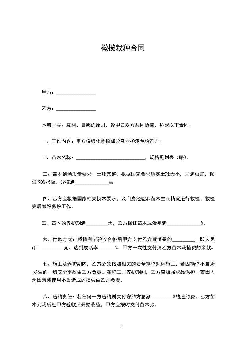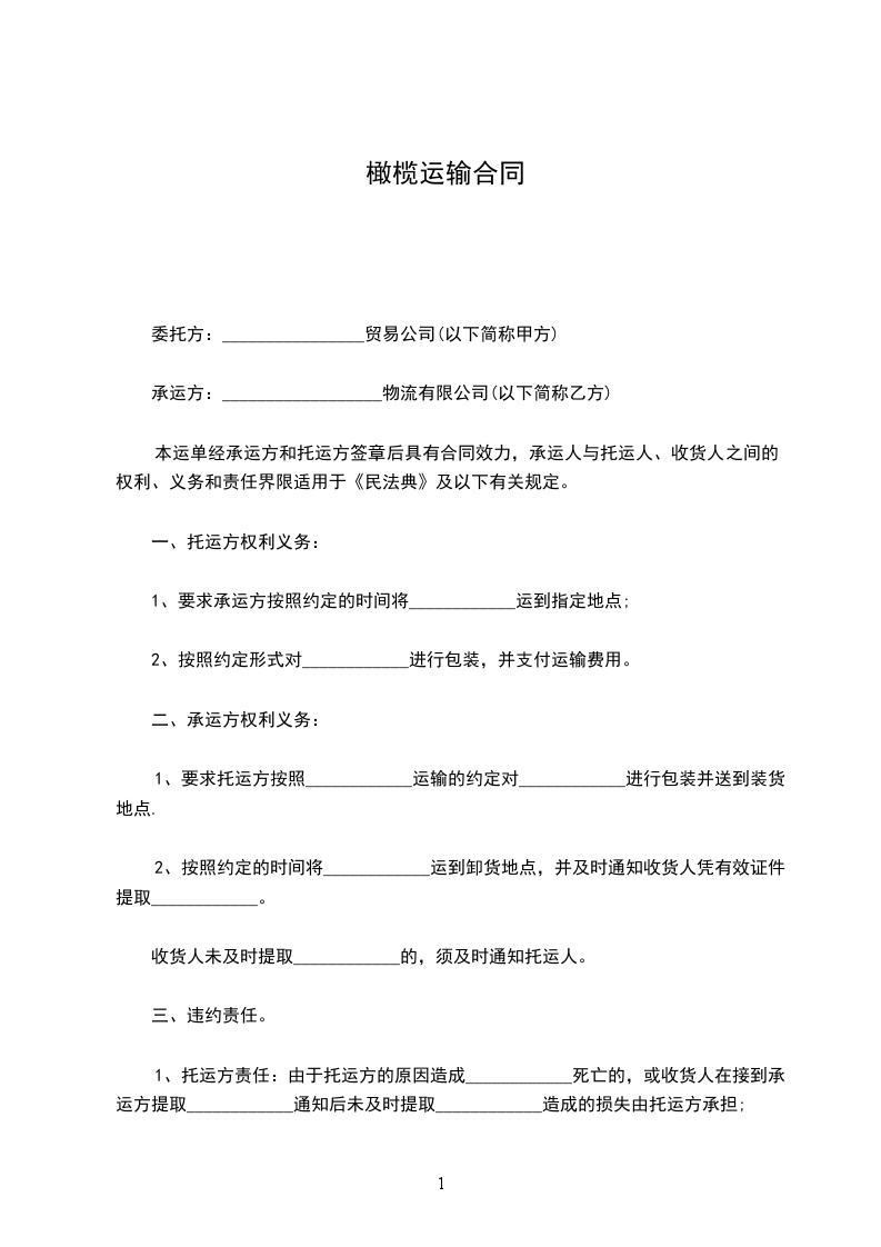 橄榄树苗运输合同