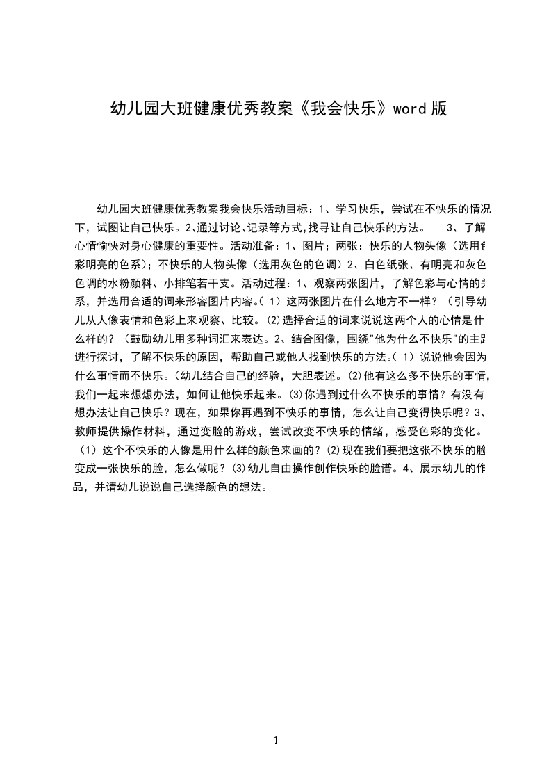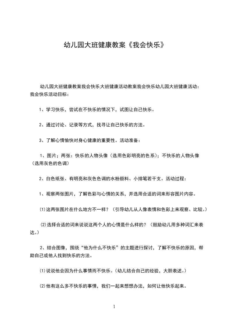 幼儿园大班健康教案我会快乐大班健康活动教案我会快乐幼儿园大班健康活动:我会快乐活动目标: