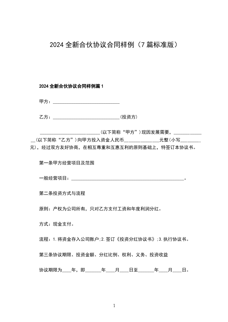 2024全新合伙协议合同样例篇1