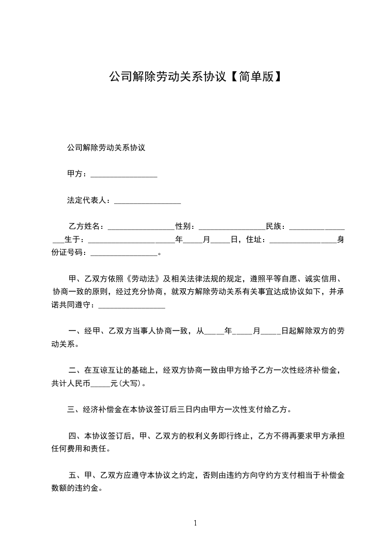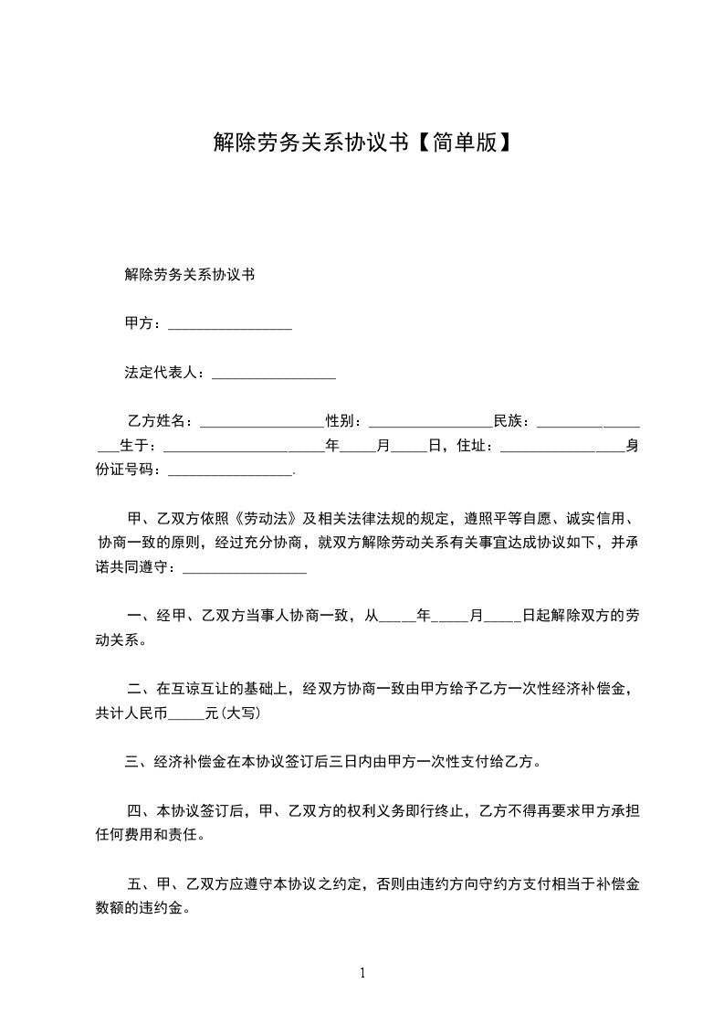 一、解除劳动合同的日期为:_______年_________月___________日;