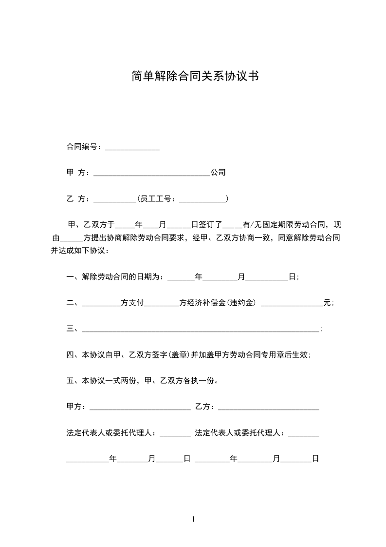 甲、乙双方于_____年____月______日签订了_____有/无固定期限劳动合同,现由______方提出协商解除劳动合同要求,经甲、乙双方协商一致,同意解除劳动合同,并达成如下协议: