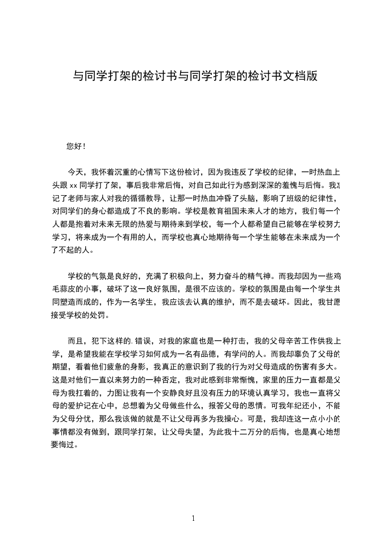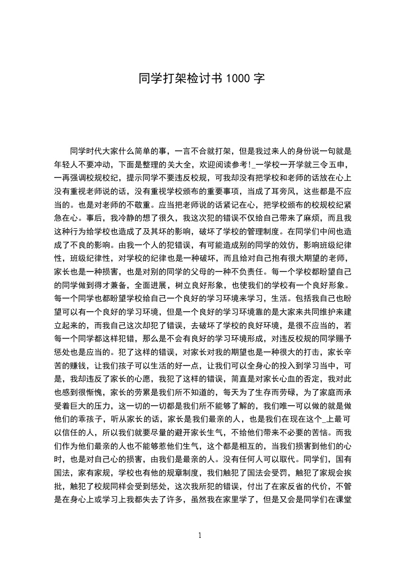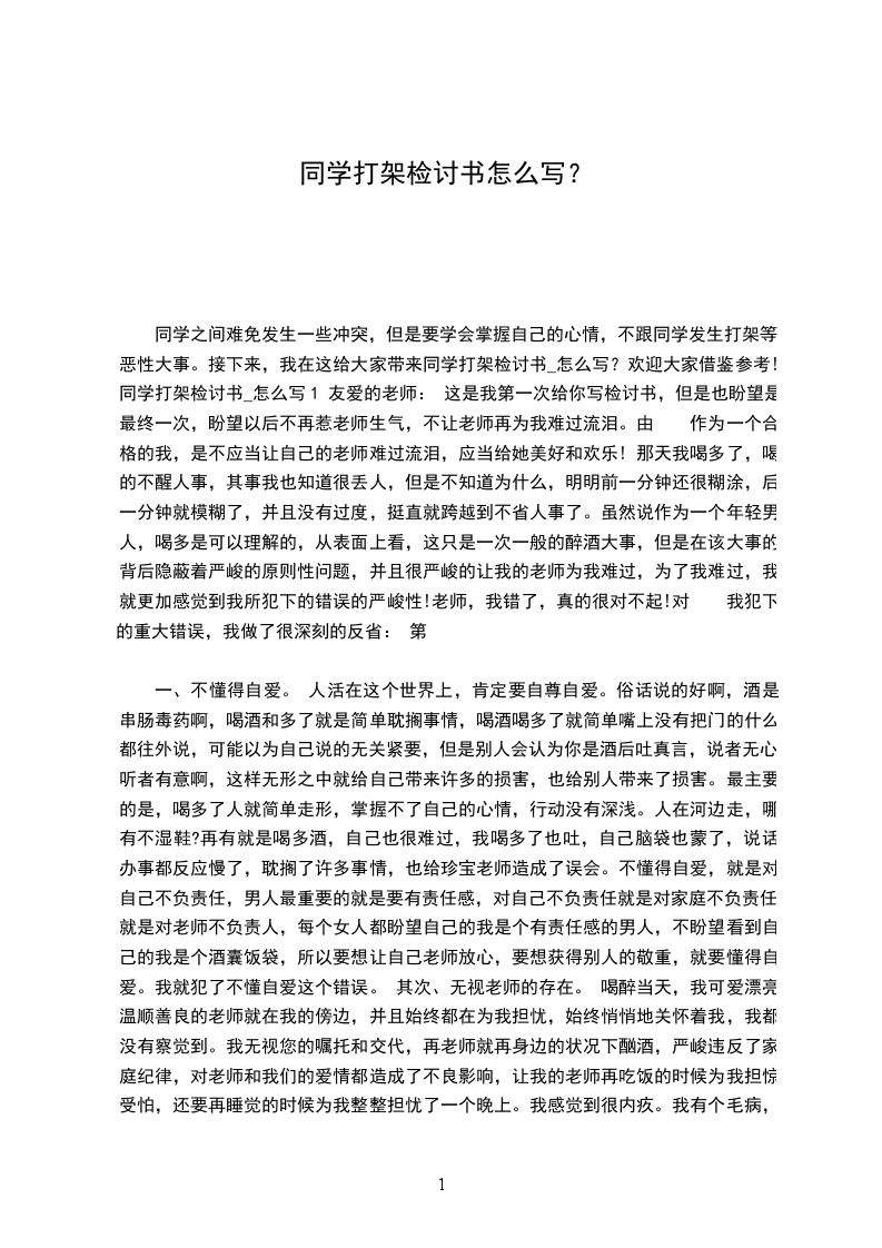 同学之间难免发生一些冲突,但是要学会掌握自己的心情,不跟同学发生打架等恶性大事。接下来,我在这给大家带来同学打架检讨书_怎么写?欢迎大家借鉴参考! 同学打架检讨书_怎么写1 友爱的老师: 这是我第一次给你写检讨书,但是也盼望是最终一次,盼望以后不再惹老师生气,不让老师再为我难过流泪。由 作为一个合格的我,是不应当让自己的老师难过流泪,应当给她美好和欢乐! 那天我喝多了,喝的不醒人事,其事我也知道很丢人,但是不知道为什么,明明前一分钟还很糊涂,后一分钟就模糊了,并且没有过度,挺直就跨越到不省人事了。虽然说作为一个年轻男人,喝多是可以理解的,从表面上看,这只是一次一般的醉酒大事,但是在该大事的背后隐蔽着严峻的原则性问题,并且很严峻的让我的老师为我难过,为了我难过,我就更加感觉到我所犯下的错误的严峻性!老师,我错了,真的很对不起!对 我犯下的重大错误,我做了很深刻的反省: 第