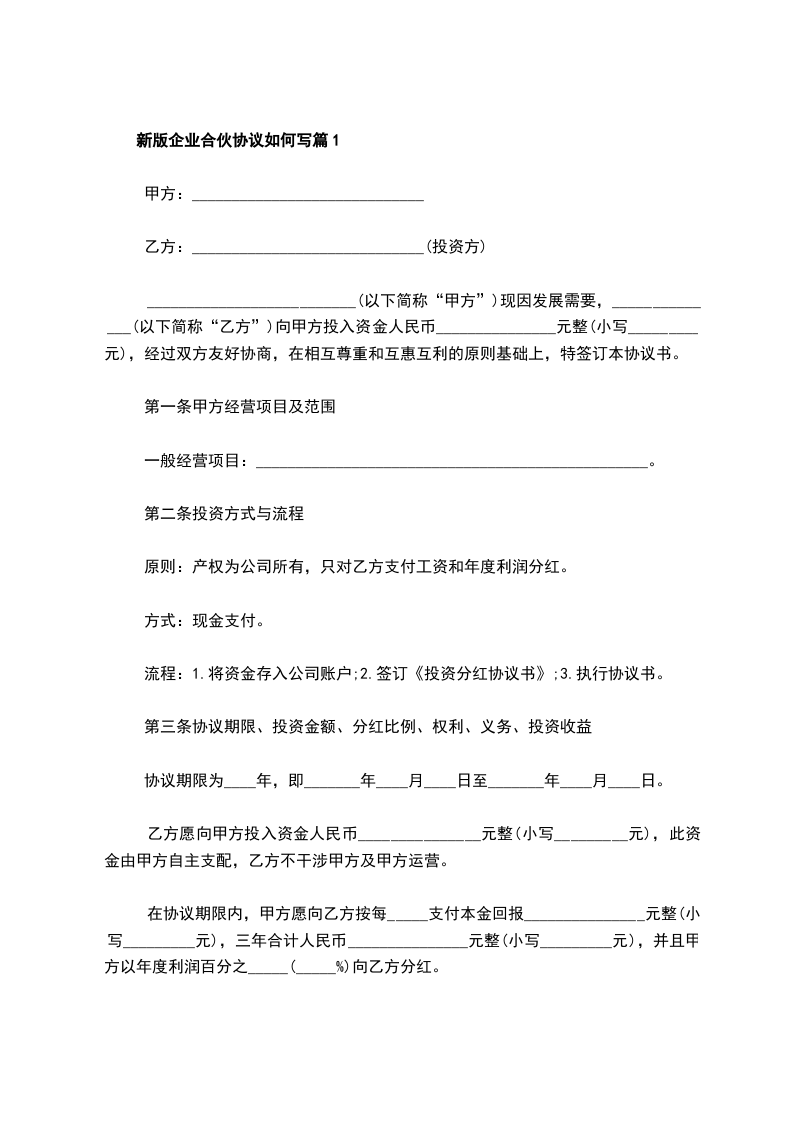 以上五方本着平等、自愿,充分协商的原则,就合伙经营________________________事项,达成如下合伙协议: