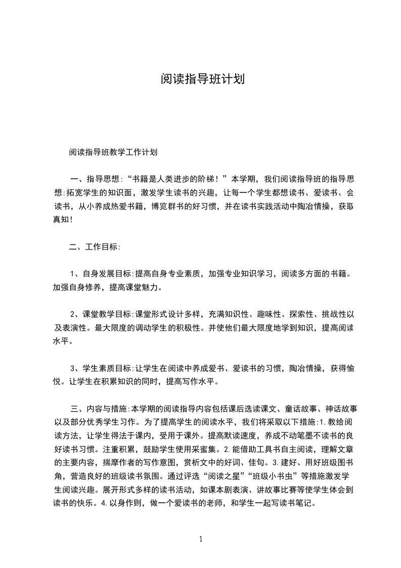 一、指导思想:“书籍是人类进步的阶梯!”本学期,我们阅读指导班的指导思想:拓宽学生的知识面,激发学生读书的兴趣,让每一个学生都想读书、爱读书、会读书,从小养成热爱书籍,博览群书的好习惯,并在读书实践活动中陶冶情操,获取真知!
