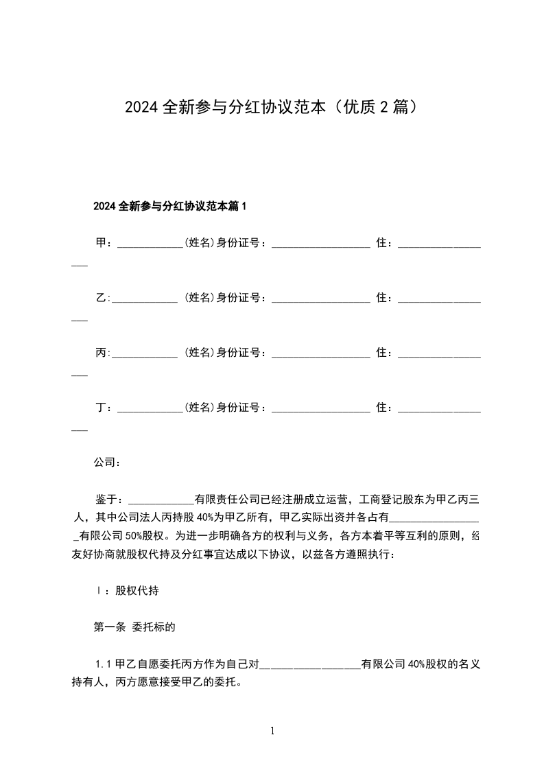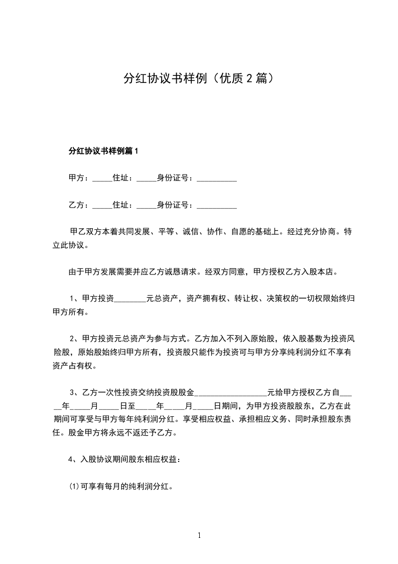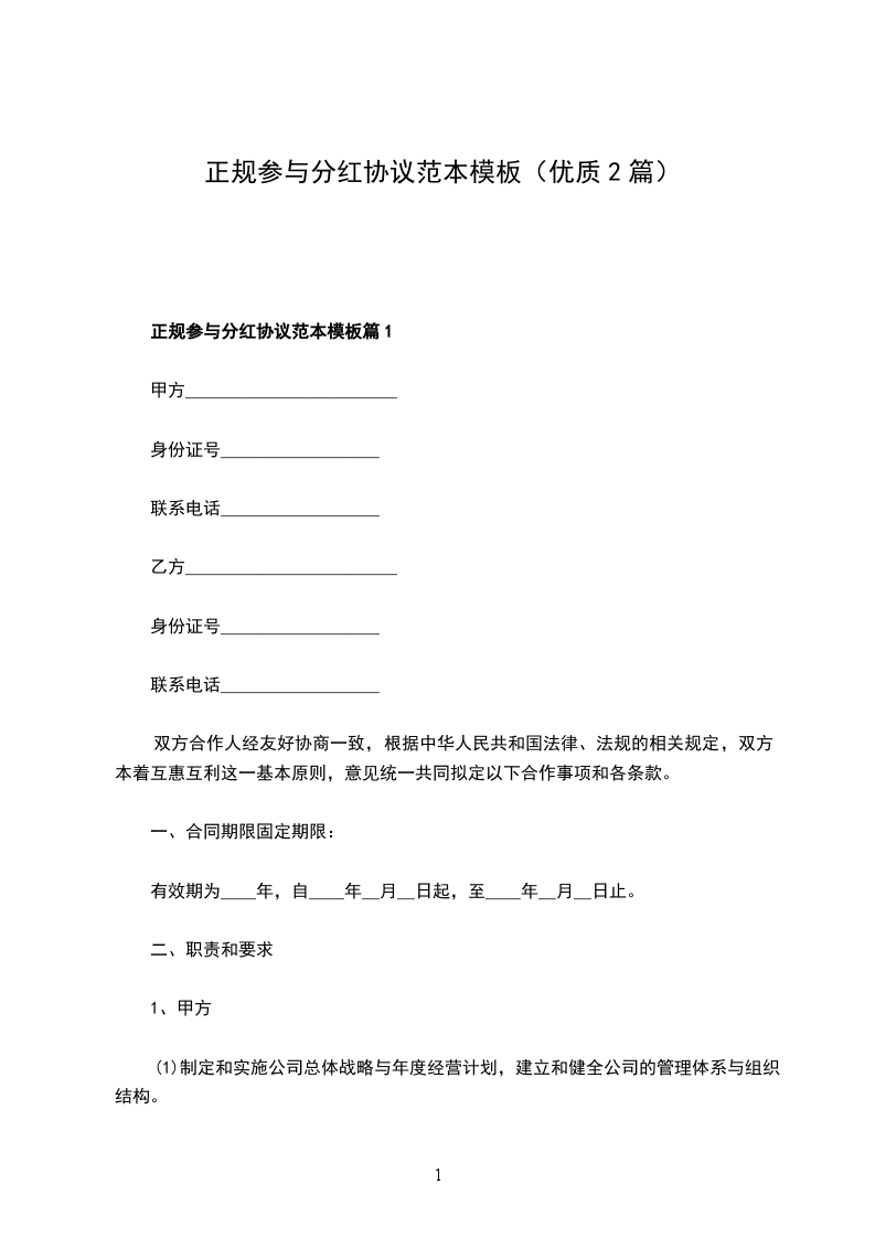 第一条 甲方承诺赠予给乙方的在职分红股(又称为虚拟股份),是指甲方在一定期限内让渡其部分在职分红股给乙方。只要在达到在职分红股赠予或分红条件时,即__________________管理有限公司满足一定条件,且同时乙方工作达到预期时,乙方享有按约定比例分享________________________管理有限公司红利的权利。从本质上讲,分红股激励属于企业股东采用附加条件赠予的方式,在一定期限内让渡部分剩余索取权,而非完整意义上的股权。