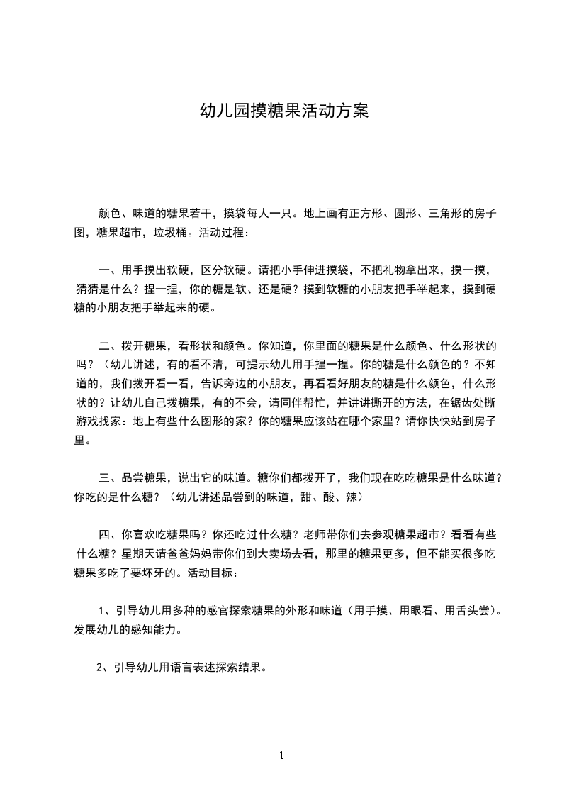 1、糖果宝宝有个家,请你们剥开自己带来的糖果的糖纸,为糖果选择一个自己喜欢的家,放入糖果小屋。