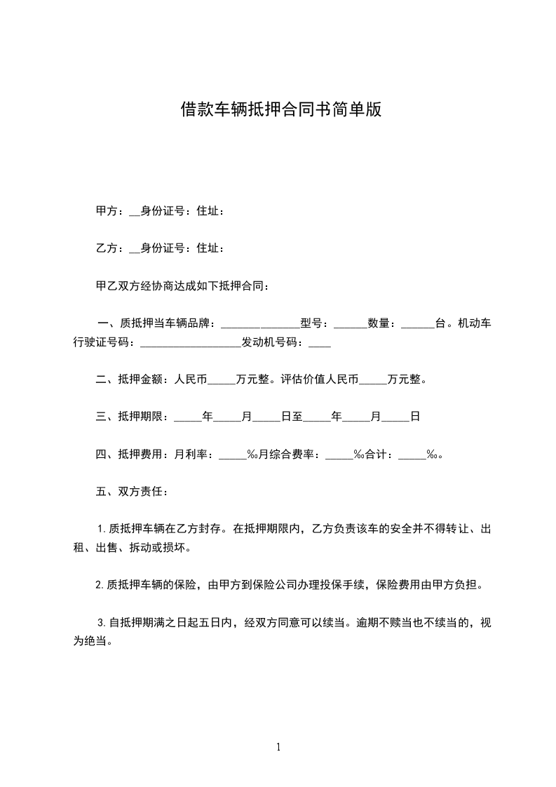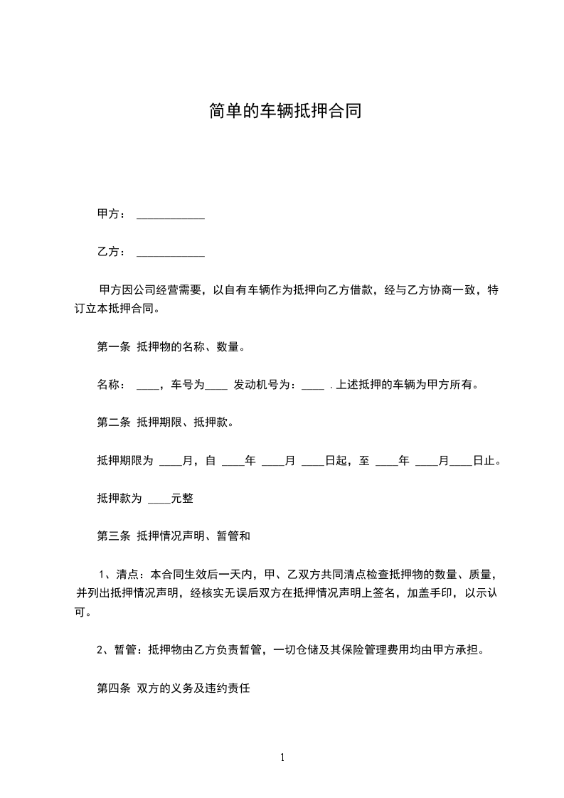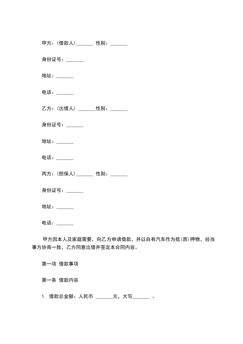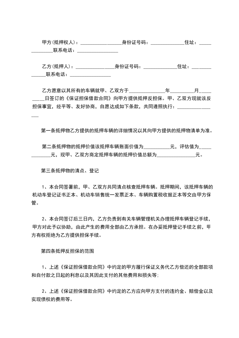 为确保乙方与甲方于________年________月________日签订的《借款合同》(编号:_________________)的履行,()乙方愿用其所有的车辆提供抵押担保,甲方接受乙方的抵押,现经双方协商一致达成如下协议: