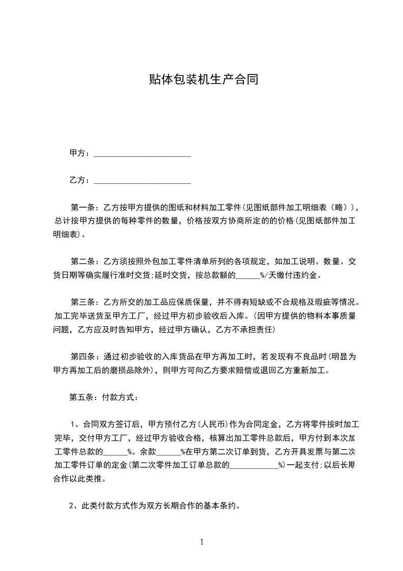 第一条:乙方按甲方提供的图纸和材料加工零件(见图纸部件加工明细表(略)),总计按甲方提供的每种零件的数量,价格按双方协商所定的的价格(见图纸部件加工明细表)。
