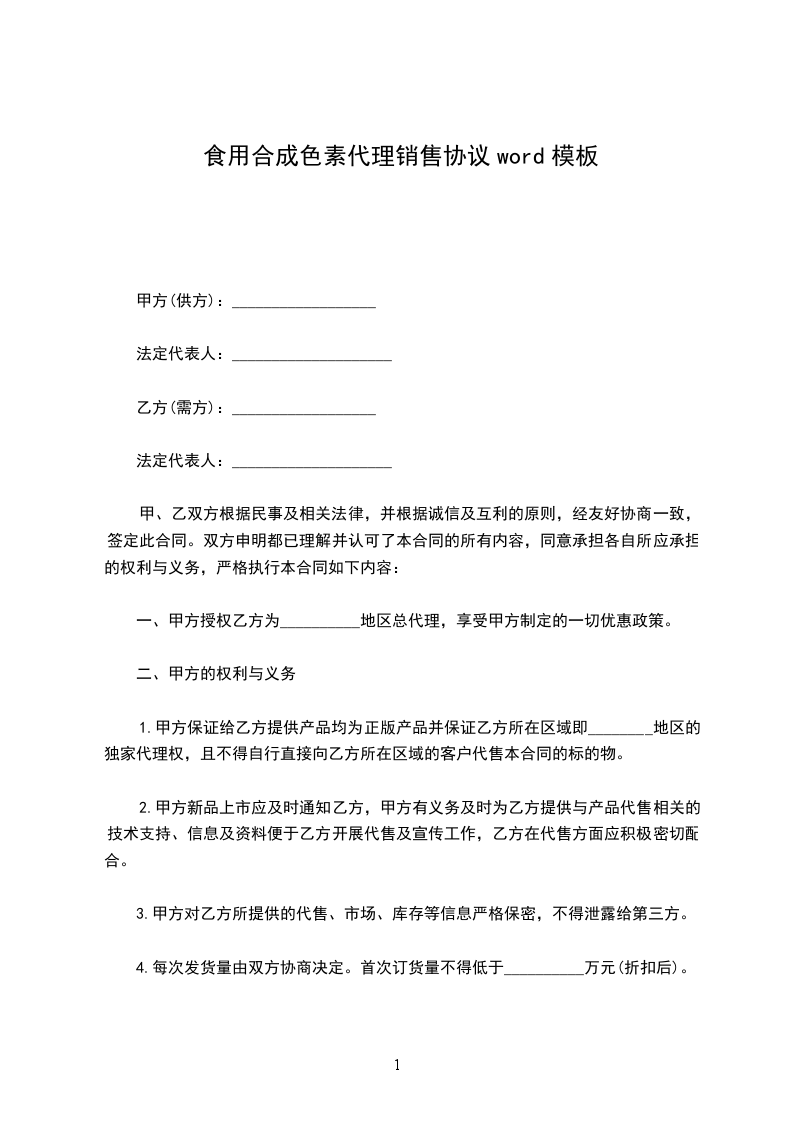 1、本合同所确定的产品为甲方生产的__________,具体的名称、规格、价格、数量及金额以甲方的价格表或甲方发货清单为准。