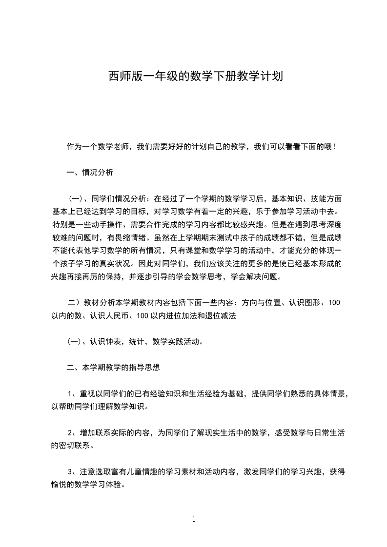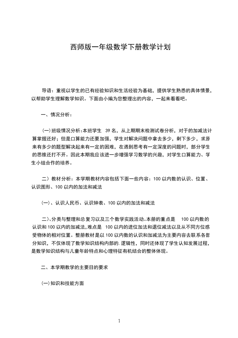 武隆县第二实验小学一年级下册数学导学案课题分类课型新授课课时1编写教师张小龙使用教师张小龙使用时间教材解读本课时的教学内容是让学生先确定分类的标准再进行分类,让学生经历分类的过程。让学生初步体会标准不同,分类的结果也不同。学习目标1.通过动手分类,体验分类的过程,让学生从不同角度思考确定分类的标准进行分类。2.通过自主探究、合作学习,感受分类的思想,培养学生的观察能力和语言表达能力。3.通过动手分一分等数学活动,让学生体验数学学习的快乐,激活学习兴趣重、难点确定不同标准进行分类。教法学法操作合作探究演示教学准备白色和红色的正方形、圆片(磁力的)。教师导学(5分钟左右)教师学生个性化修改1.多媒体出示两个文具店,让学生观察比较。2.教师提问你喜欢哪个文具店?3.教师根据学生的回答,讲解什么叫做分类。4.教师板书课题,点名本节课的学习内容。1.学生观察文具店。2.回答老师提出的问题。3.根据老师的讲解和板书明确本节课的学习内容。个体自学(5分钟左右)1.将准备好的磁力正方形、圆片摆放在黑板上(分成三组)。2.教师提出要求让学生思考,怎么把这些图形进行分类?3.抽取学生到黑板上分类.4.教师根据学生的分类进行板书。.1.学生观察明确有哪些图形?2.独立进行思考,并独立分类(抽取学生到黑板上分类).3.说说自己为什么要这样分?同伴助学(10分钟左右1.多媒体出示需要分类的数字。2.让学生读一读有哪些数字。3.提出要求。4.分小组讨论可以按哪些标准进行分类?5.让学生填写分类的结果。1.学生读数字。2.明确要求。3.分组讨论可以按哪些标准来分类。4.填写分类的结果在学习单上。展示评学(15分钟左右)1.分组汇报讨论得出的标准有哪些?2.展示分类的结果。3.边展示边请学生评价。4.引导学生完成分别练习题。5.如何把教室里面的人进行分类。1.汇报分类的标准。2.展示分类的结果。3.评价结果。4.在教师的引导下逐一完成练习。5.学生将教室的人进行分类。提升延学(5分钟左右)1.让学生举例生活中还有哪些地方用到了分类?2.展示图片,让学生体会分类给我们生活带来的便利。3.从超市的图片提问,让学生解决从而引入整理统计,结束全课。1.学生举例。2.学生看图片体会分类带来的便利。3.观察超市图片,根据老师的问题,激发学习整理统计的欲望。板书设计分类按颜色分类摆图形先确定标准按形状分类摆图形既按颜色又按形状分类摆图形标准不同,分类的结果就不同。我的收获教学中,使我进一步体会到了学生在实践中学习的重要性,同时也让我走出了低年级学生课堂难以把控的困境,使我明白了师生之间的互动怎样开展才更有效果。我的疑惑学生分组讨论中,怎样才能保证每个层次的学生都有所收获。