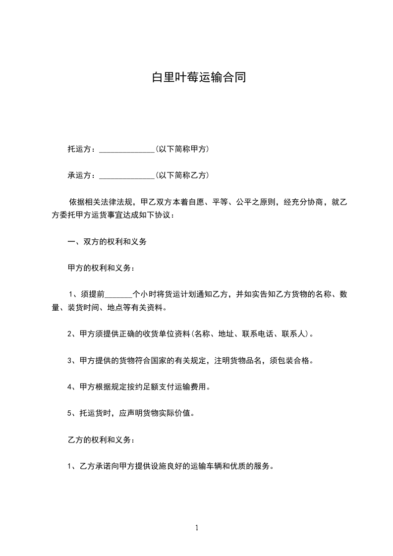 1、须提前_______个小时将货运计划通知乙方,并如实告知乙方货物的名称、数量、装货时间、地点等有关资料。