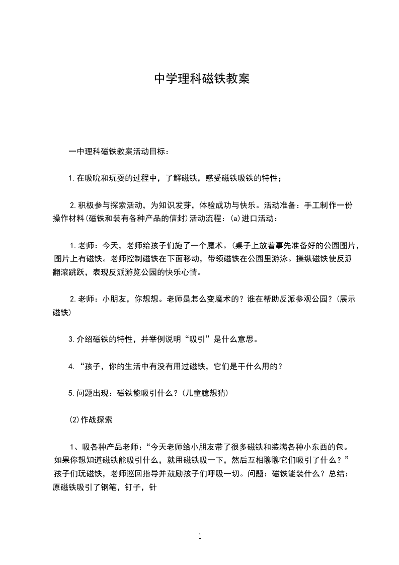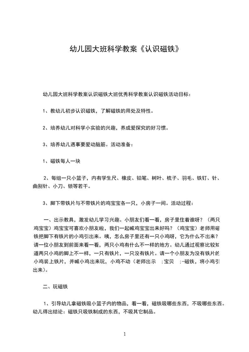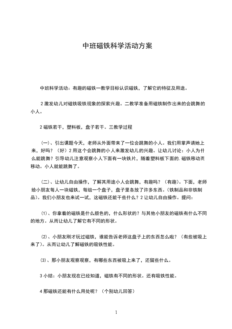 1、教幼儿初步认识磁铁,了解磁铁的用处及特性。