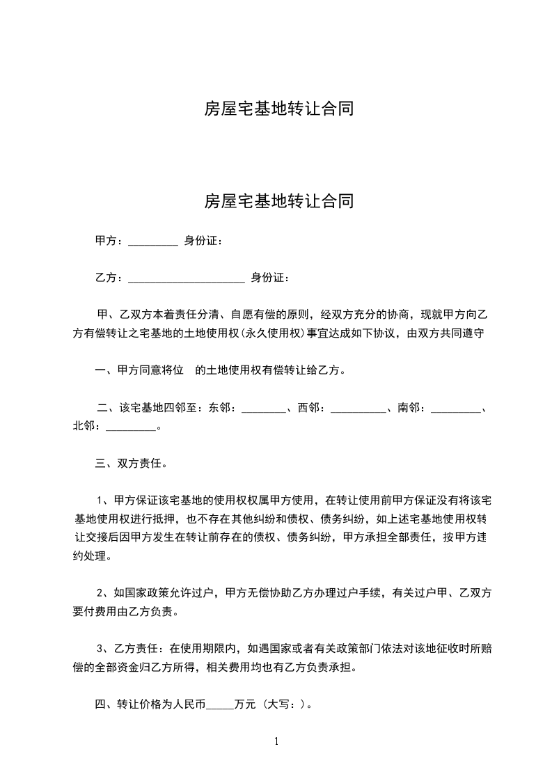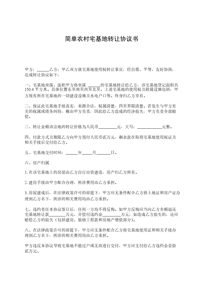 甲乙双方就宅基地使用权转让事宜,经自愿、平等、友好协商,达成转让协议如下: