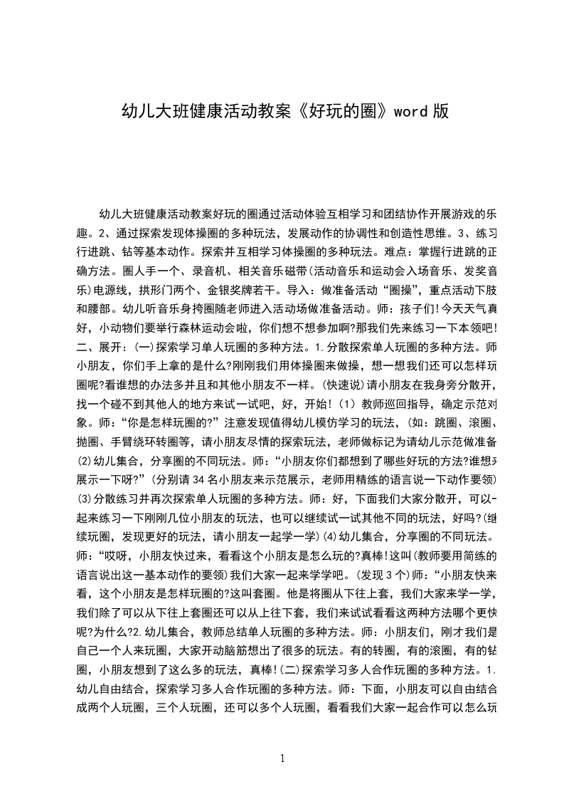 幼儿园大班健康教案好玩的五环圈大班健康领域教案及反思好玩的五环圈活动目标: