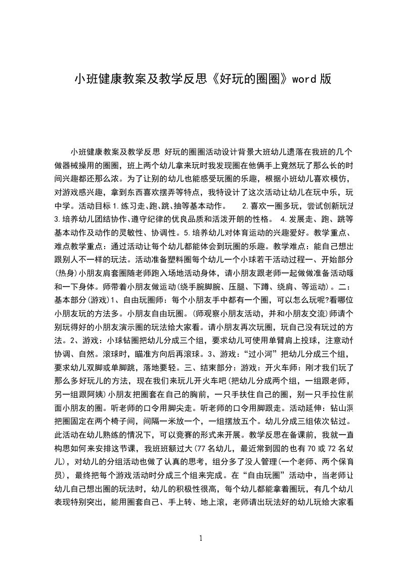 2、幼儿自己收拾体操圈,整理场地,结束活动。活动反思: