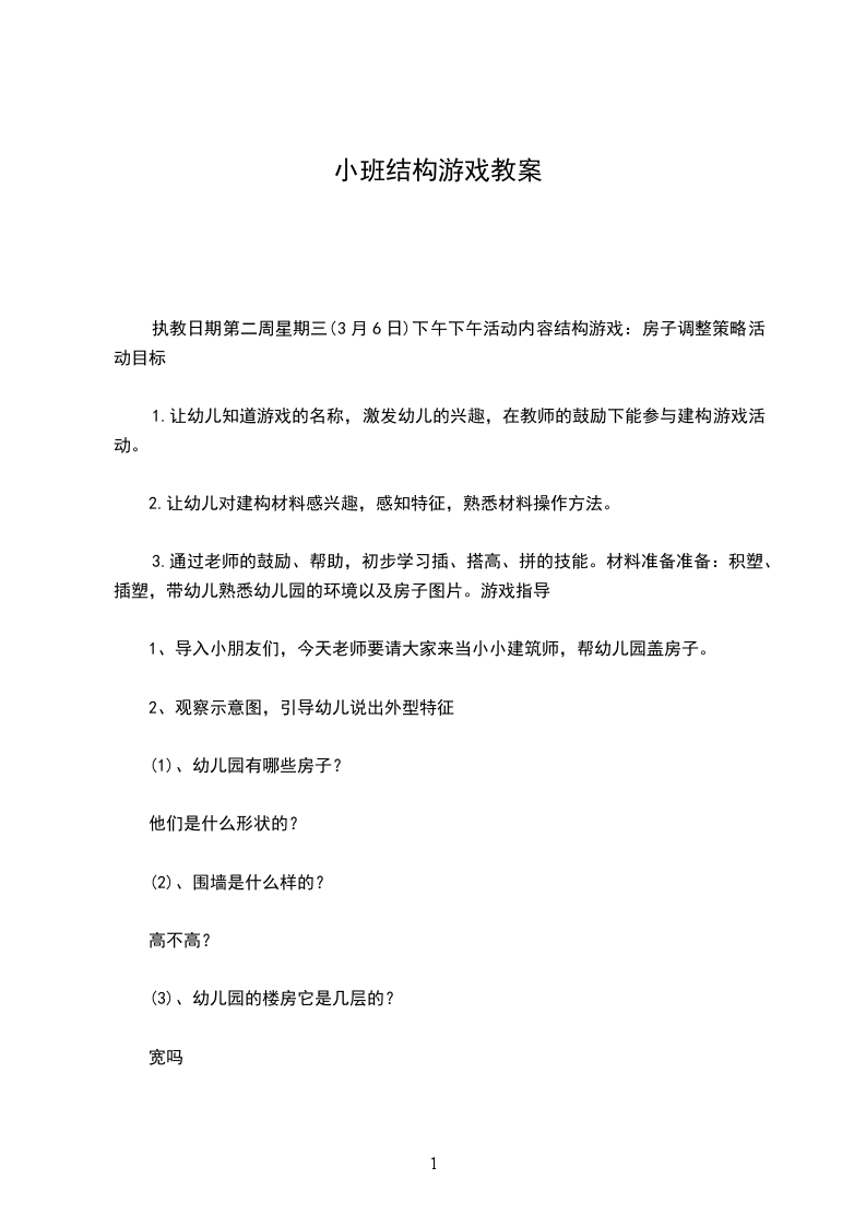执教日期第二周星期三(3月6日)下午下午活动内容结构游戏:房子调整策略活动目标