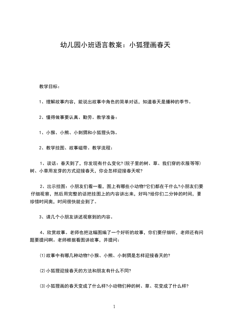 1、理解故事内容,能说出故事中角色的简单对话,知道春天是播种的季节。