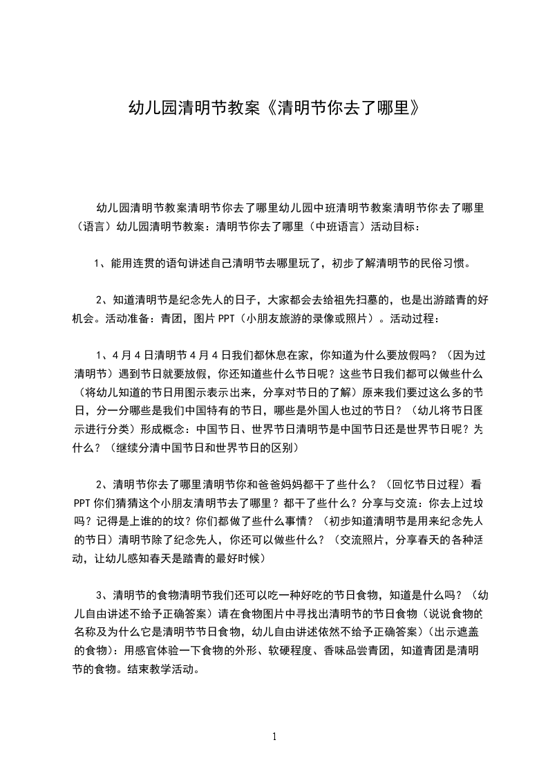幼儿园清明节教案清明节你去了哪里幼儿园中班清明节教案清明节你去了哪里(语言)幼儿园清明节教案:清明节你去了哪里(中班语言)活动目标:
