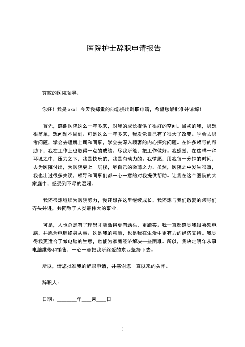 你好!我是xxx!今天我郑重的向您提出辞职申请,希望您能批准并谅解!
