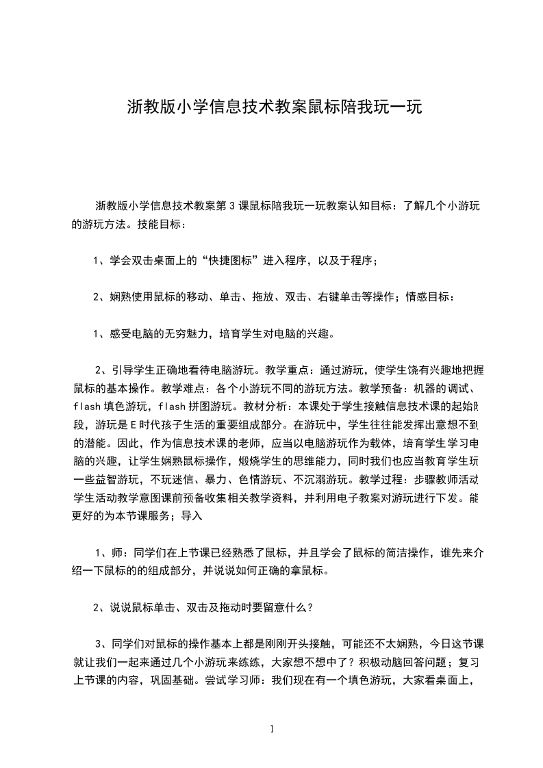 浙教版小学信息技术教案第3课鼠标陪我玩一玩教案认知目标:了解几个小游玩的游玩方法。技能目标:
