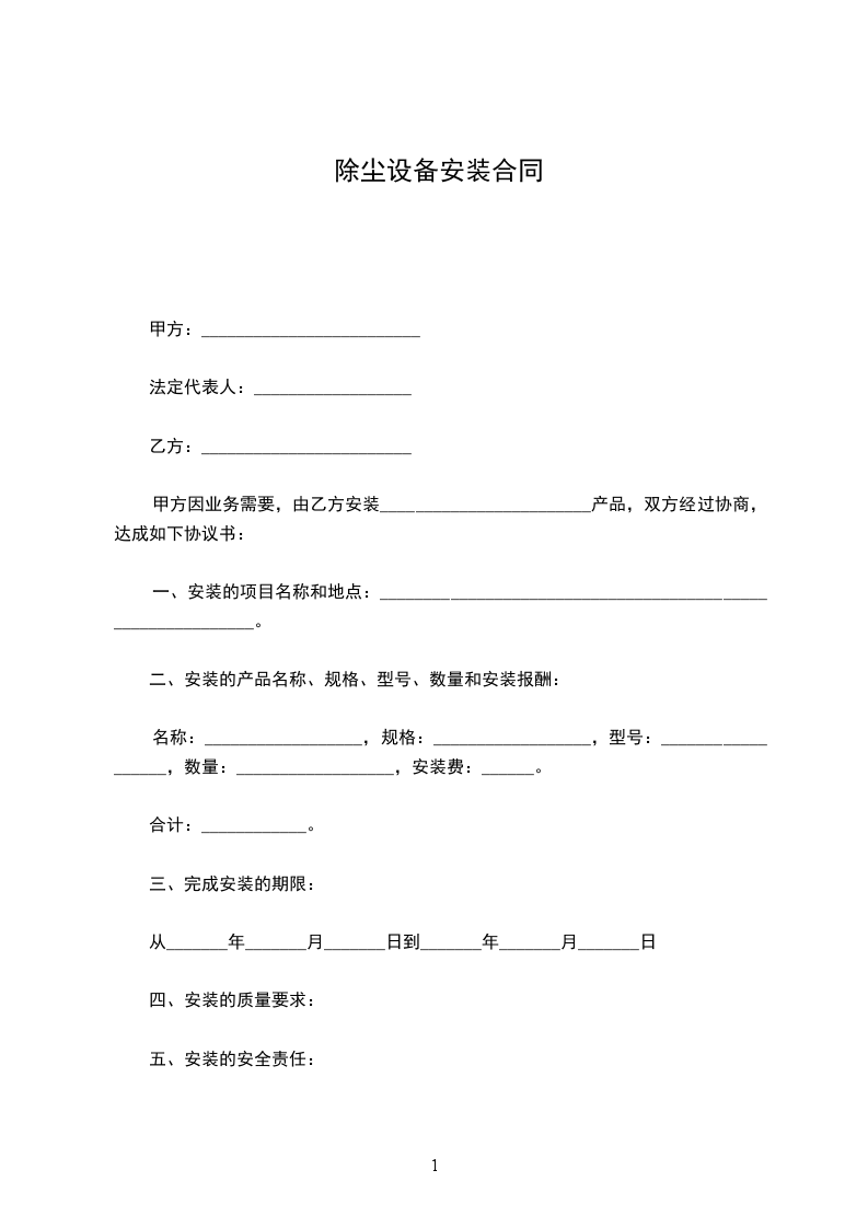 除尘设备安装合同