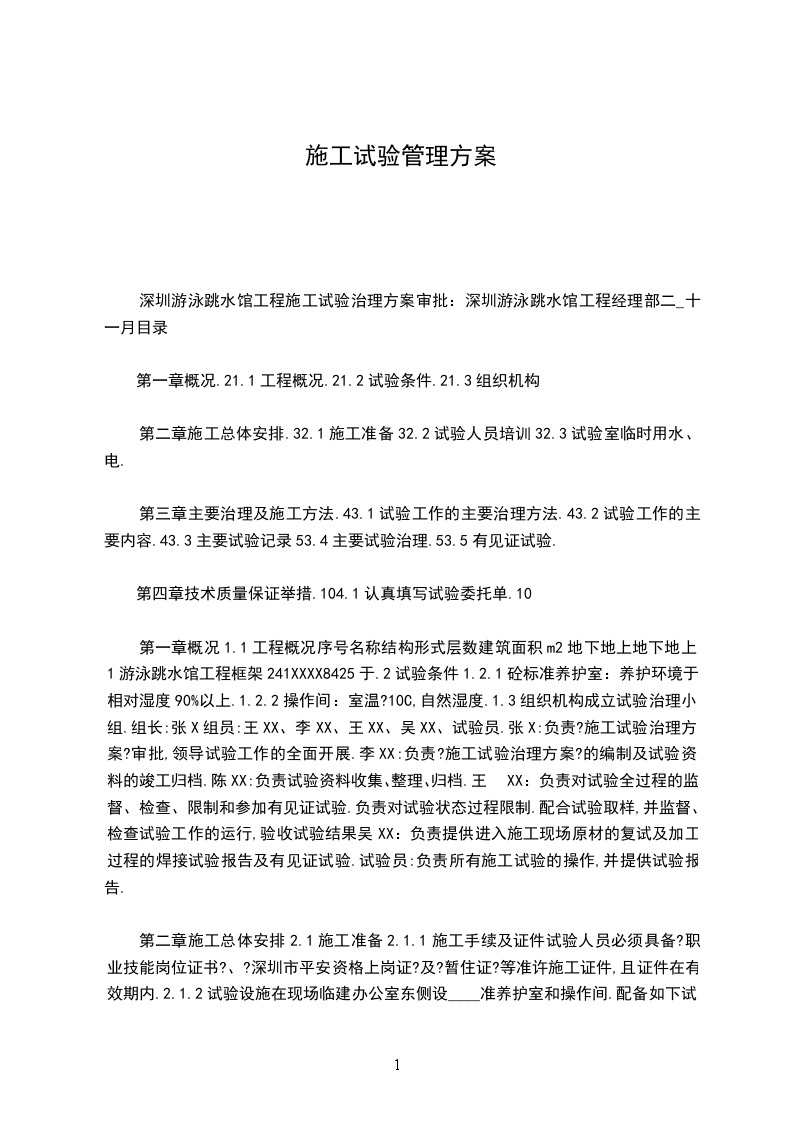 深圳游泳跳水馆工程施工试验治理方案审批:深圳游泳跳水馆工程经理部二_十一月目录