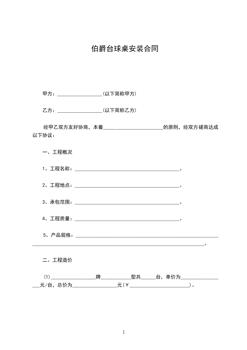 5、工期90天,逾期乙方承担________________________元/天的违约费,如遇雨天等不可抗拒因素,工期顺延。具体安装时间以甲方通知为准。