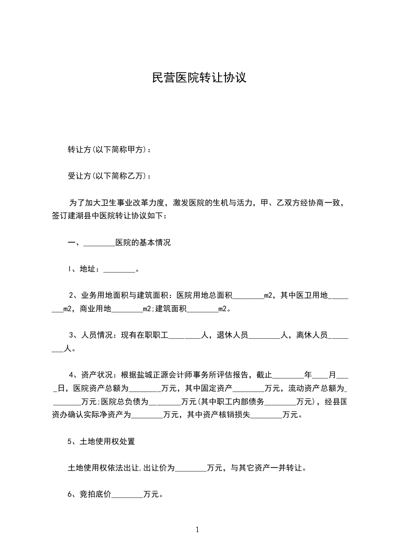 为了加大卫生事业改革力度,激发医院的生机与活力,甲、乙双方经协商一致,签订建湖县中医院转让协议如下:
