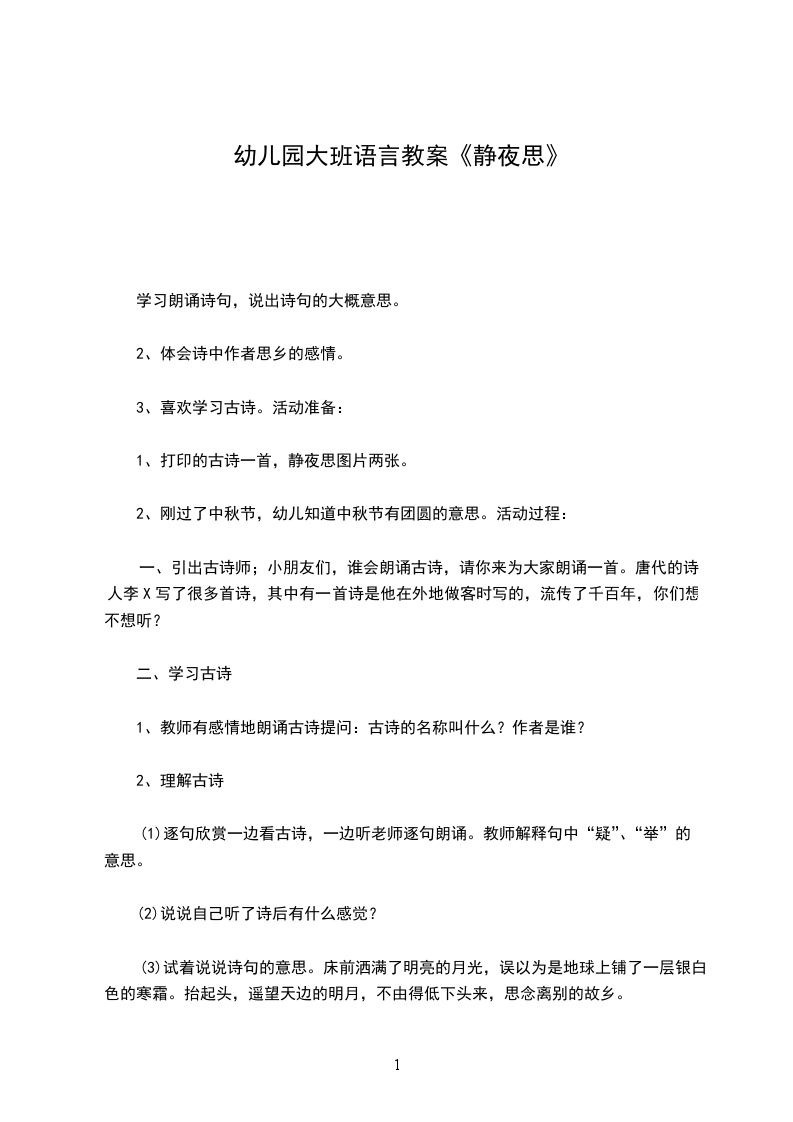 一、引出古诗师;小朋友们,谁会朗诵古诗,请你来为大家朗诵一首。唐代的诗人李X写了很多首诗,其中有一首诗是他在外地做客时写的,流传了千百年,你们想不想听?