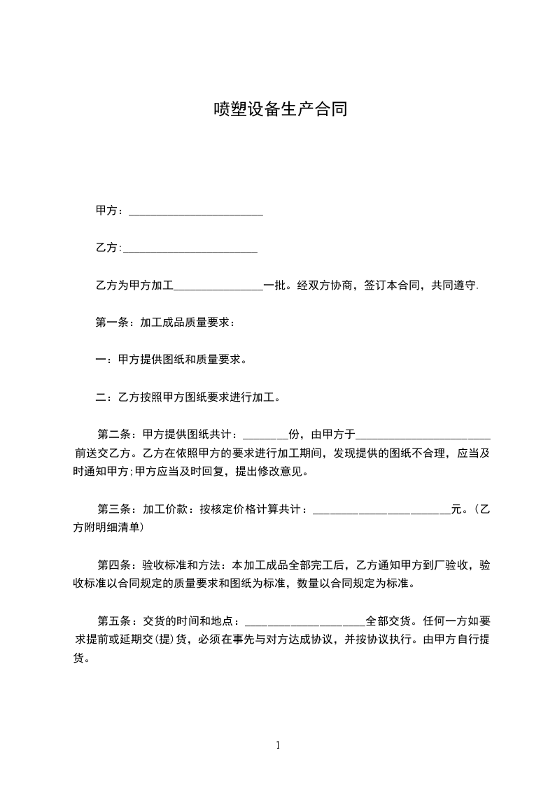 第二条:甲方提供图纸共计:________份,由甲方于________________________前送交乙方。乙方在依照甲方的要求进行加工期间,发现提供的图纸不合理,应当及时通知甲方;甲方应当及时回复,提出修改意见。