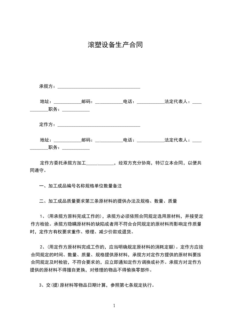 三:甲方如未按合同规定的时间向乙方提供图纸和其他技术资料,除交付加工件的日期得以顺延外,甲方应当偿付乙方因停工待料的损失。