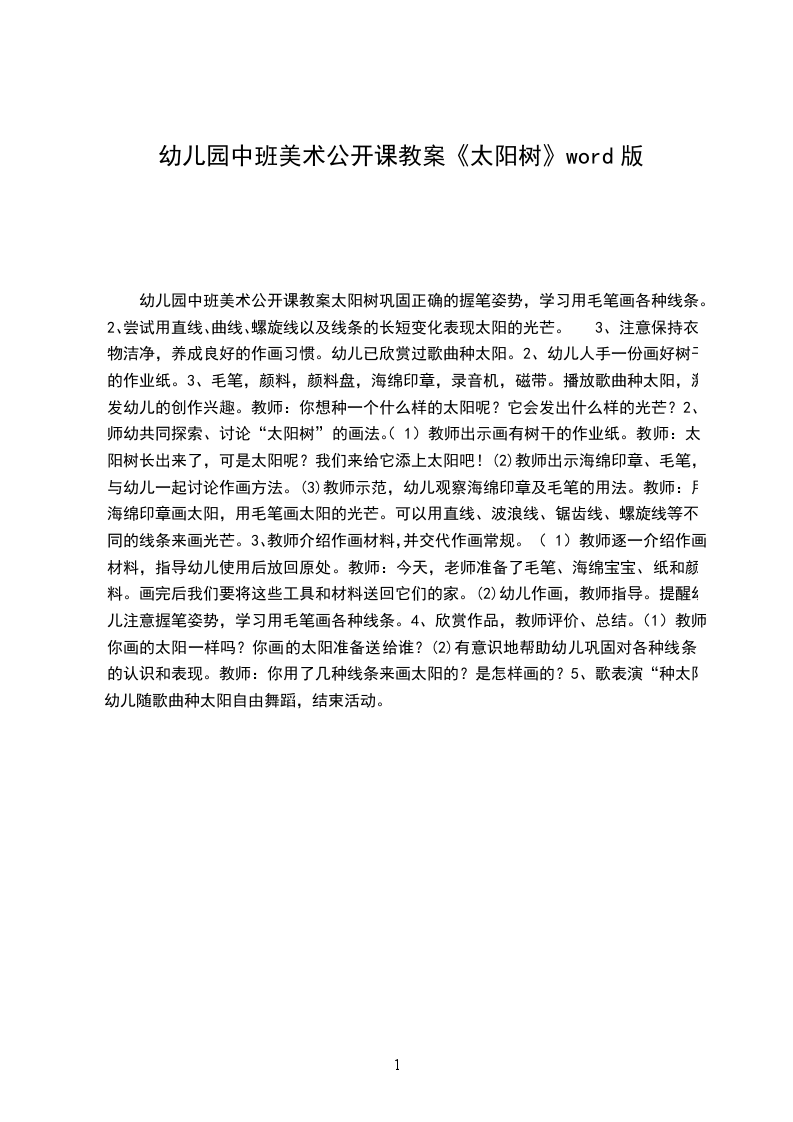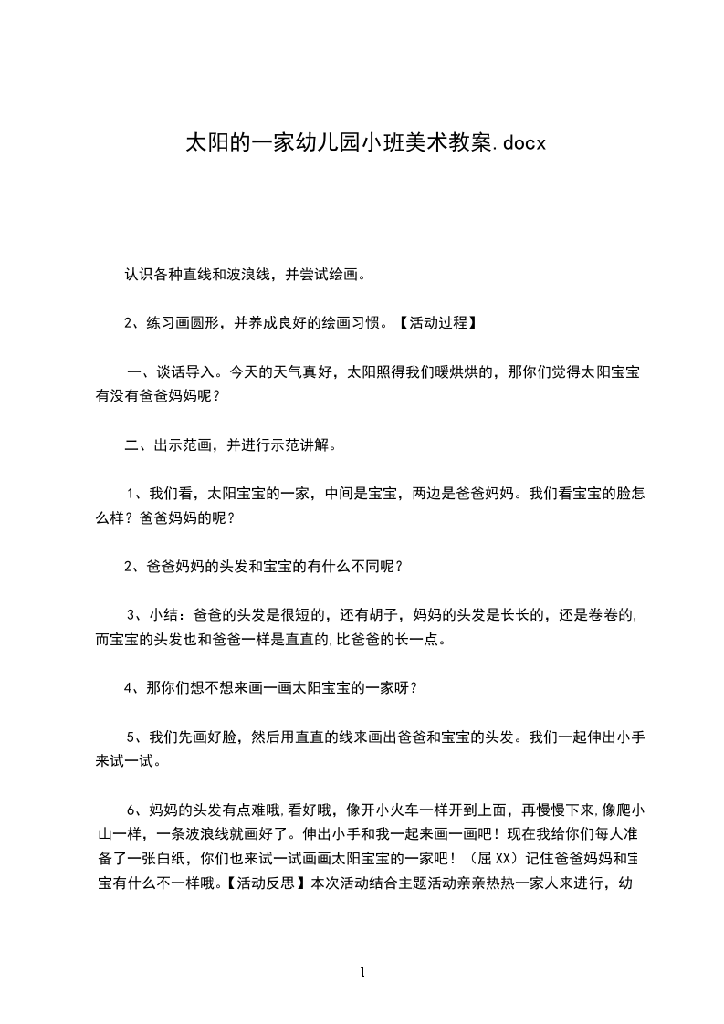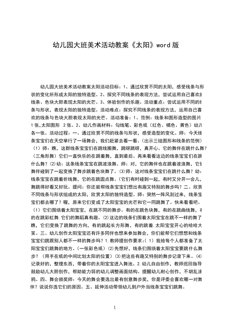 (1)教师引导幼儿欣赏画面,说说:图上有什么?太阳宝宝的头发、眼睛、脸以及光芒是什么样子的?