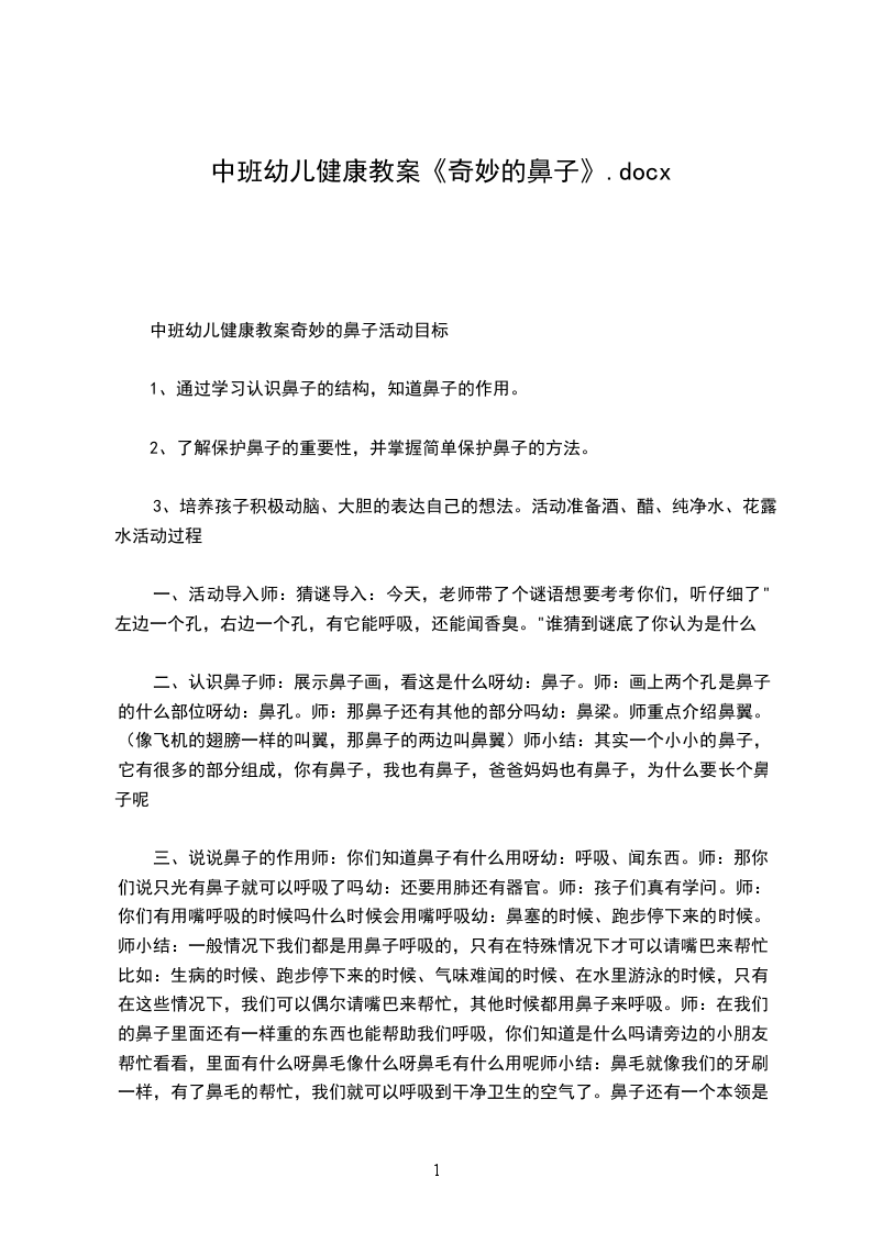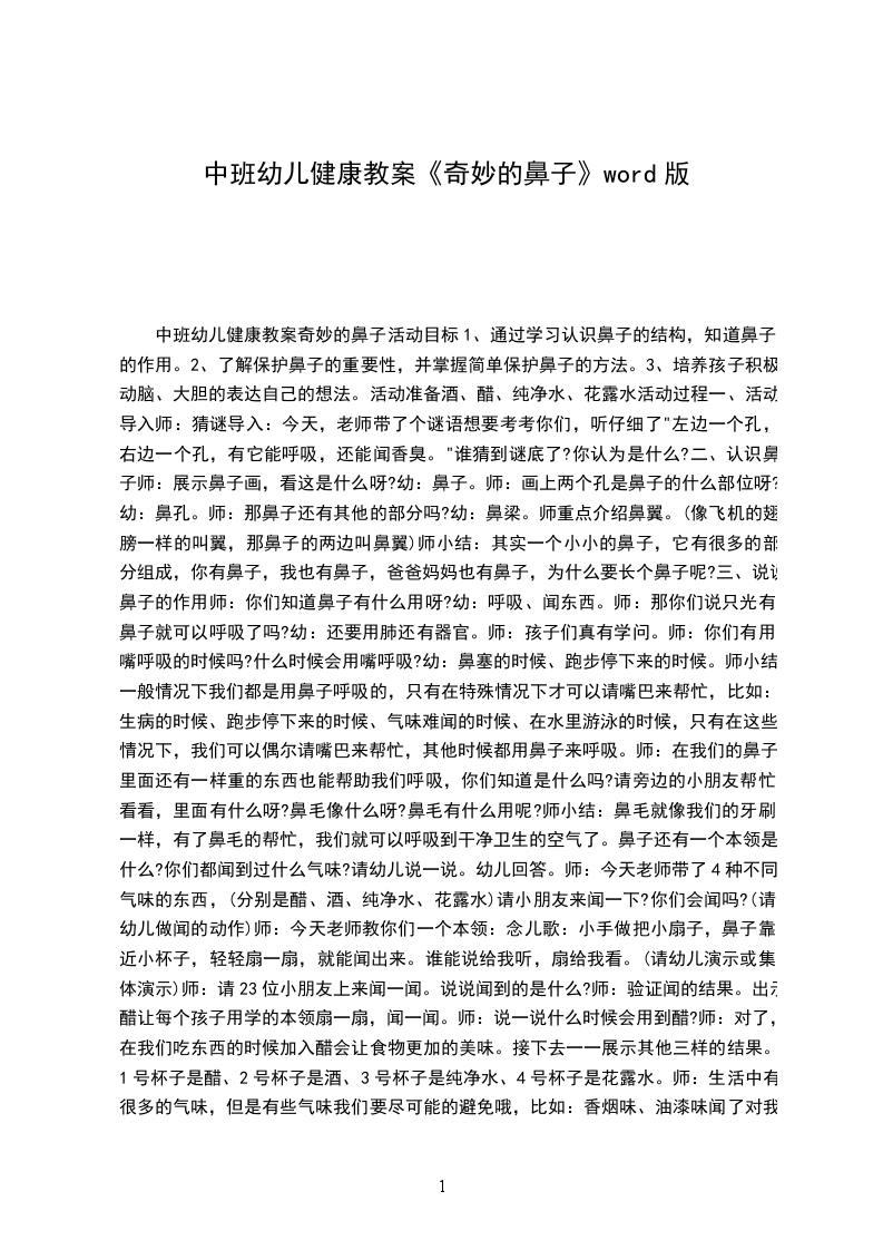 幼儿园大班健康教案我们的鼻子大班上学期健康教案我们的鼻子活动目标: