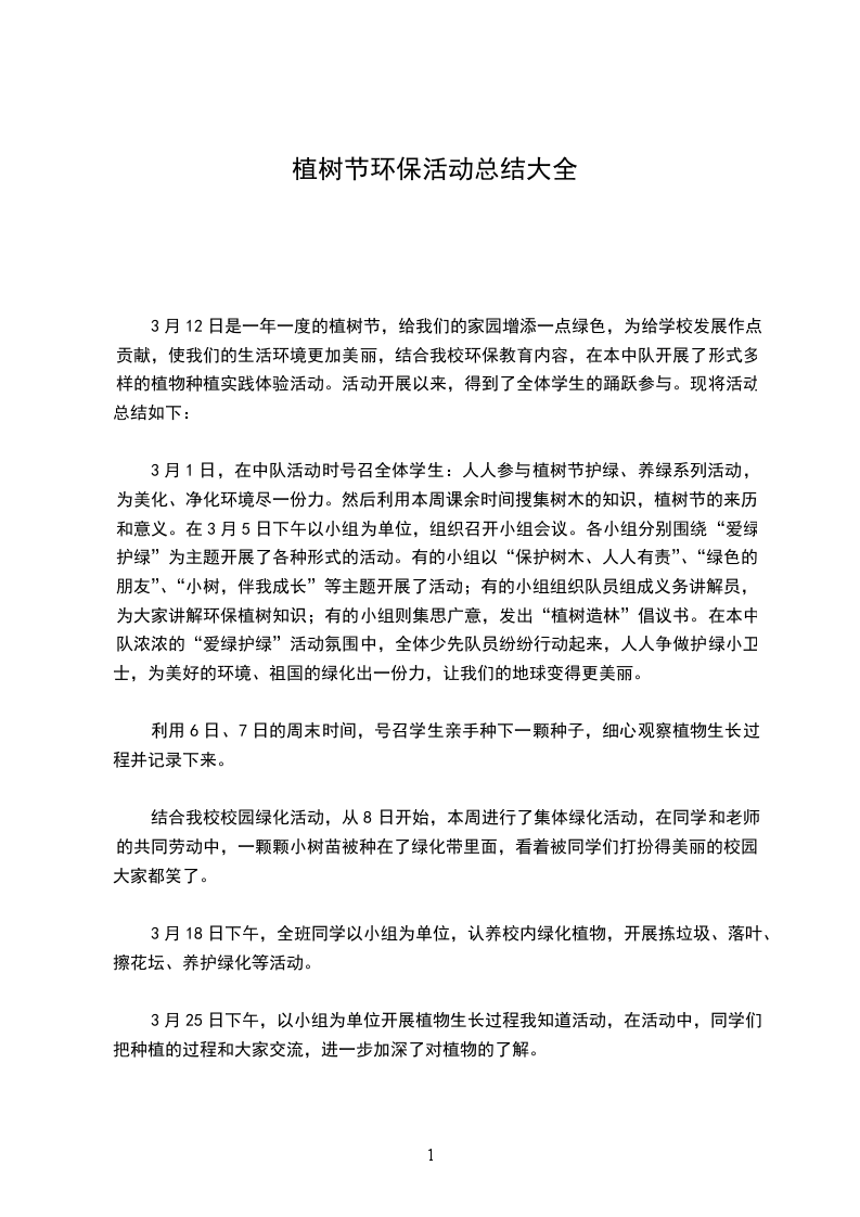 3、老师拿照相机记录幼儿在植树节的活动。 活动结束: 老师要求幼儿从家带盆栽,放到教室里,教会幼儿如何照看好花草树木。 植树节活动方案5