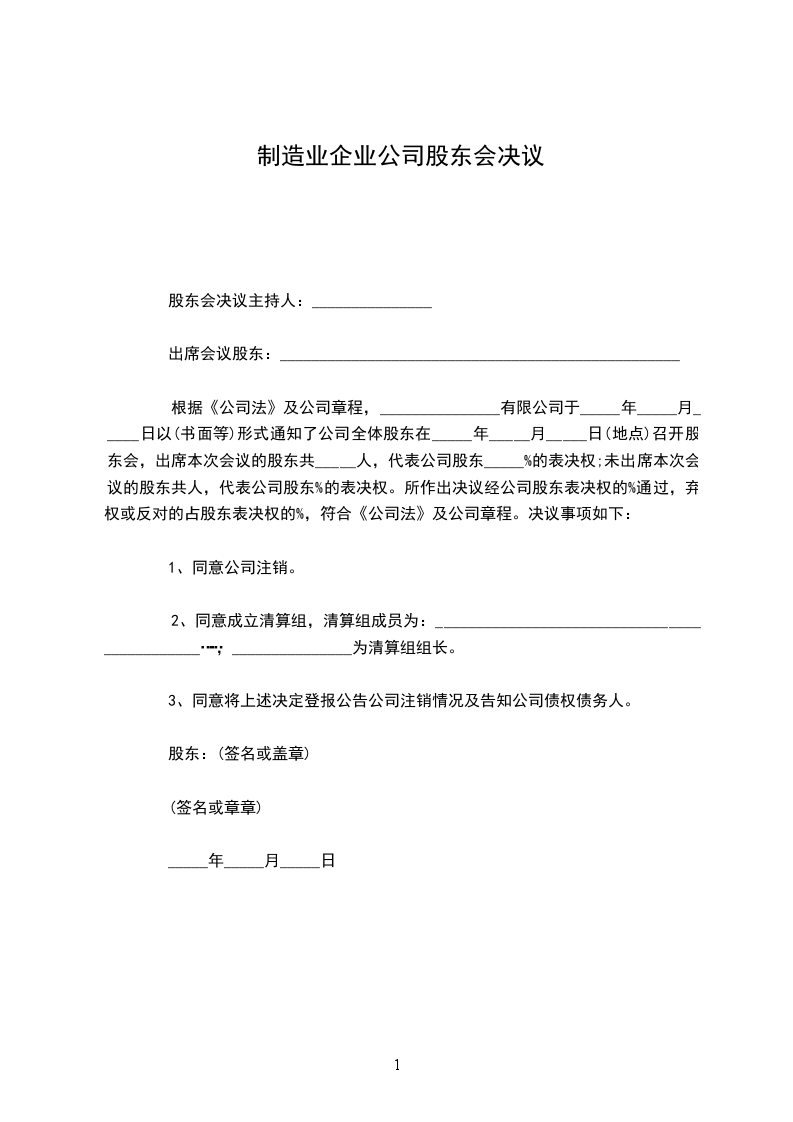 根据《公司法》及公司章程,_______________有限公司于_____年_____月_____日以(书面等)形式通知了公司全体股东在_____年_____月_____日(地点)召开股东会,出席本次会议的股东共_____人,代表公司股东_____%的表决权;未出席本次会议的股东共人,代表公司股东%的表决权。所作出决议经公司股东表决权的%通过,弃权或反对的占股东表决权的%,符合《公司法》及公司章程。决议事项如下: