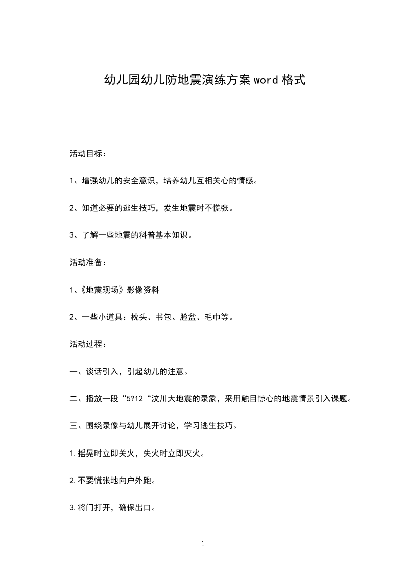 四、地震演习今天,小朋友知道了这么多关于地震的知识,让我们来进行一次地震演习,看看小朋友会不会保护自己。活动反思:汶川大地震就像发生在昨天一样令我们记忆深刻。这让我们意识到对幼儿进行地震教育的重要性。幼儿只有通过各种感官才能印象深刻地了解地震的有关常识,懂得自救的方法。在本节课中,通过视频、图片的观看极大地调动了幼儿的经验讨论和演习活动幼儿能积极地参与,获得了真实的体验,急救箱的小游戏又让幼儿懂得在生活当中应提前预备好急救物品,达到了很好的效果。不足是在不同的场地,如何灵活自救,对于幼儿来说是一个难点,也是今后工作中的重点。
