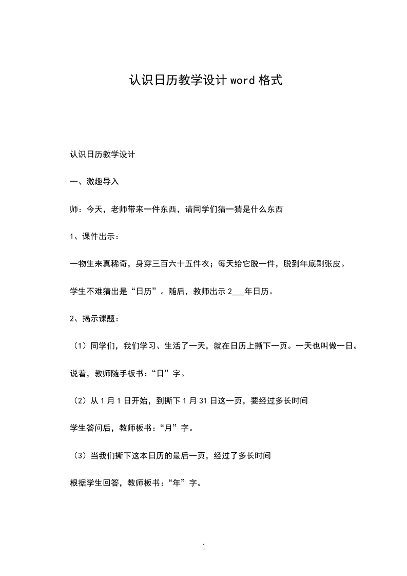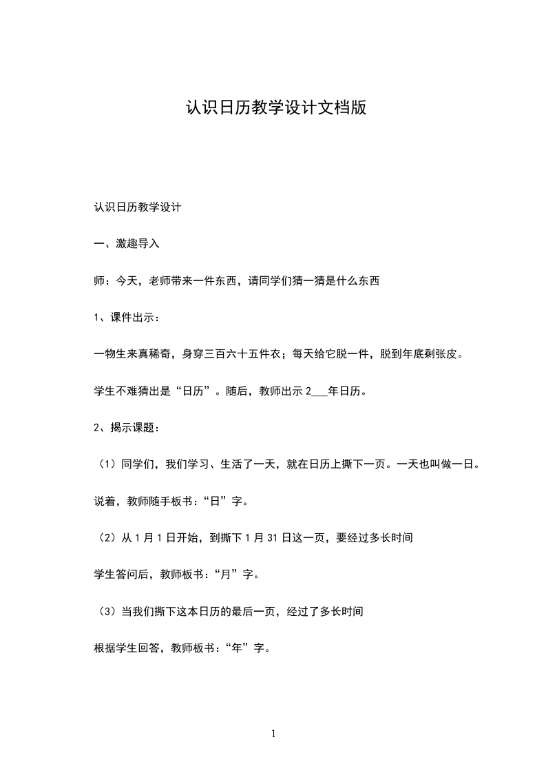 1、认识年份。师:这是哪一年的日历?()