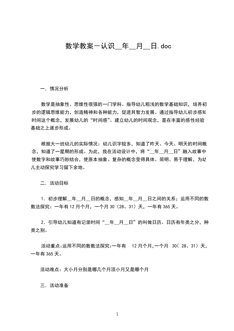 2、了解日历在生活中的运用及作用。活动准备:多种不同的日历活动过程: