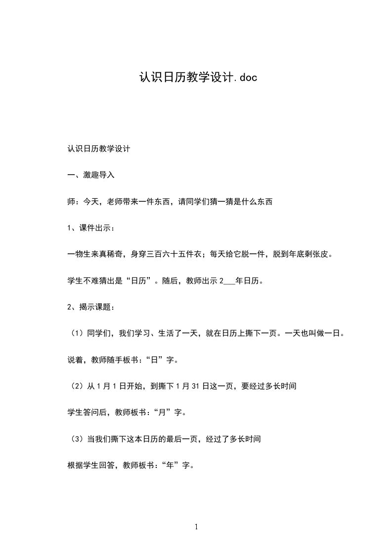 1、和幼儿一起说说日历的样子