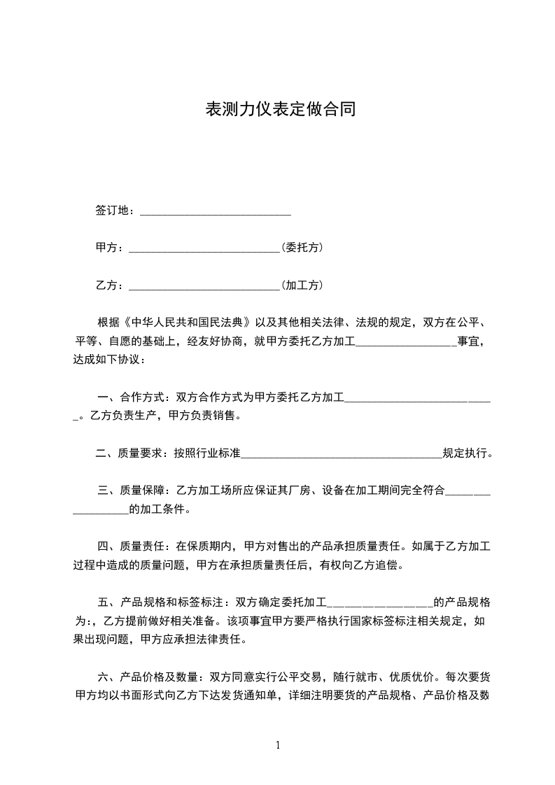 根据《中华人民共和国民法典》以及其他相关法律、法规的规定,双方在公平、平等、自愿的基础上,经友好协商,就甲方委托乙方加工__________________事宜,达成如下协议: