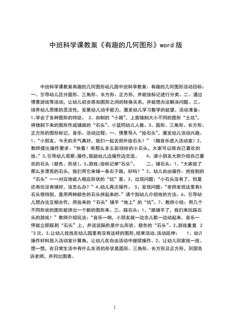 幼儿园中班数学说课稿教案有趣的几何图形作为一位优秀的人民教师,通常需要用到说课稿来辅助教学,借助说课稿可以有效提高教学效率。怎么样才能写出优秀的说课稿呢?