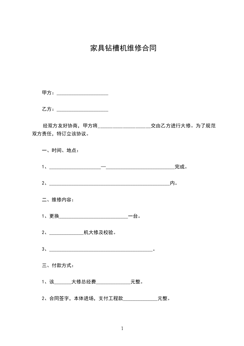 1、甲方将_____________________交给乙方维修。故障为____________________________。