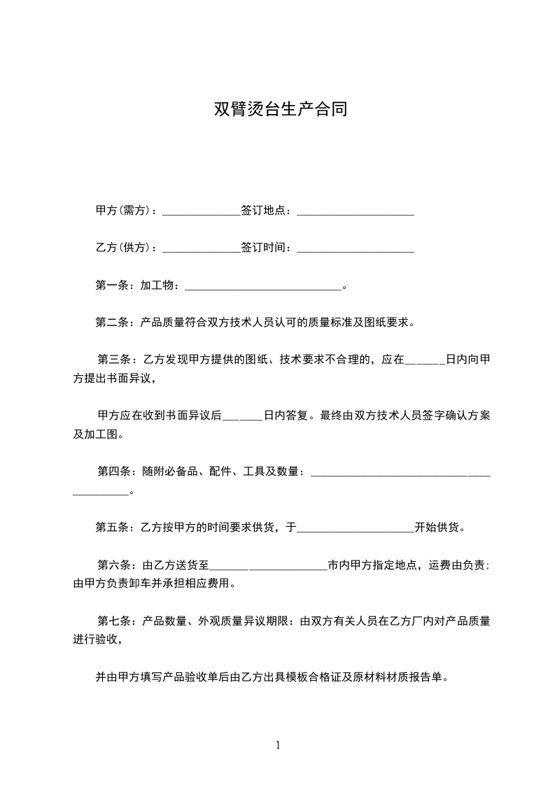 二手双臂烫台维修合同