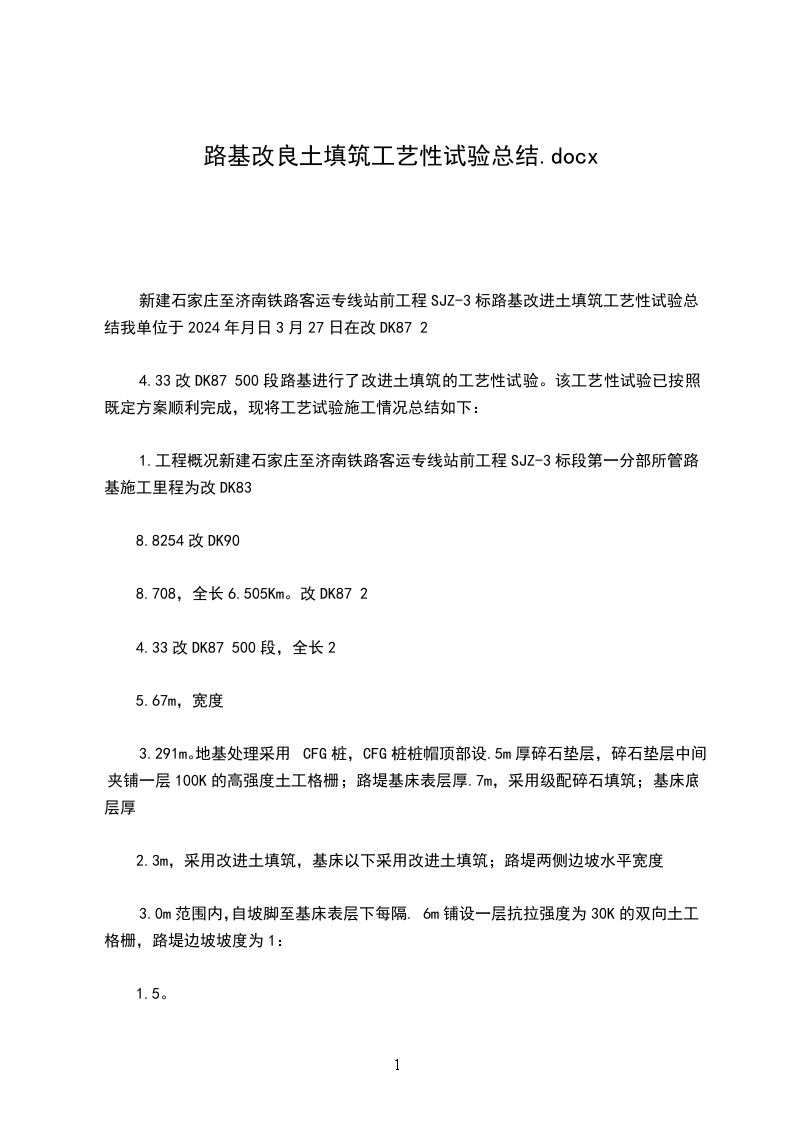 1、1)第一段细角砾土的碾压里程为DK761+450DK761+550,填筑虚铺厚度为35cm,碾压遍数为5遍即:一遍静压、一遍弱振、两遍强振、最后一遍静压。具体压实数据见下表:碾压遍数虚铺厚度地基系数孔隙率33585.079.081.031.433.733.083.034.832.233.0碾压遍数虚铺厚度地基系数孔隙率435114.0110.0118.02829.528.4106.026.929.228.8碾压遍数虚铺厚度地基系数孔隙率535136.0143.0146.025.024.624.6133.026.926.123.52)第二段细角砾土的碾压里程为DK761+550DK761+650,填筑虚铺厚度为45cm,碾压遍数为5遍即:一遍静压、一遍弱振、两遍强振、最后一遍静压。具体压实数据见下表:碾压遍数虚铺厚度地基系数孔隙率34581.081.080.033.732.234.882.032.234.133.3碾压遍数虚铺厚度地基系数孔隙率445114.0117.0110.029.928.428.0102.028.830.728.8碾压遍数虚铺厚度地基系数孔隙率545140.0135.0138.025.426.925.0131.024.626.524.23)第三段细角砾土的碾压里程为DK761+650DK761+750,填筑虚铺厚度为55cm,碾压遍数为6遍即:一遍静压、一遍弱振、两遍强振、最后两遍静压。具体压实数据见下表:碾压遍数虚铺厚度地基系数孔隙率45587.090.088.033.335.231.194.033.033.734.5碾压遍数虚铺厚度地基系数孔隙率55598.0110.0109.029.228.427.7105.026.126.528.4碾压遍数虚铺厚度地基系数孔隙率655132.0134.0129.024.625.824.2137.024.225.025.0根据路基填筑细角砾土工艺试验结果,施工建议如下:1)在路基本体填筑时采用虚铺厚度为45cm左右,填料的最佳含水量为5%。压路机采用于型振动压路机,压实遍数为5遍,即:一遍静压、一遍弱振、二遍强振、一遍静压,压路机行走速度按第一遍静压时采用2档,其余均采用1档进行压实。压实顺序按照先两侧后中间;曲线地段先内侧后外侧,先快后慢,先静压后振动再静压的操作程序。2)在路基基床底层填筑时采用虚铺厚度为35cm左右,填料的最佳含水量为5%。压路机采用于型振动压路机,压实遍数为5遍,即:一遍静压、一遍弱振、二遍强振、一遍静压,压路机行走速度按第一遍静压时采用2档,其余均采用1档进行压实。压实顺序按照先两侧后中间;曲线地段先内侧后外侧,先快后慢,先静压后振动再静压的操作程序。